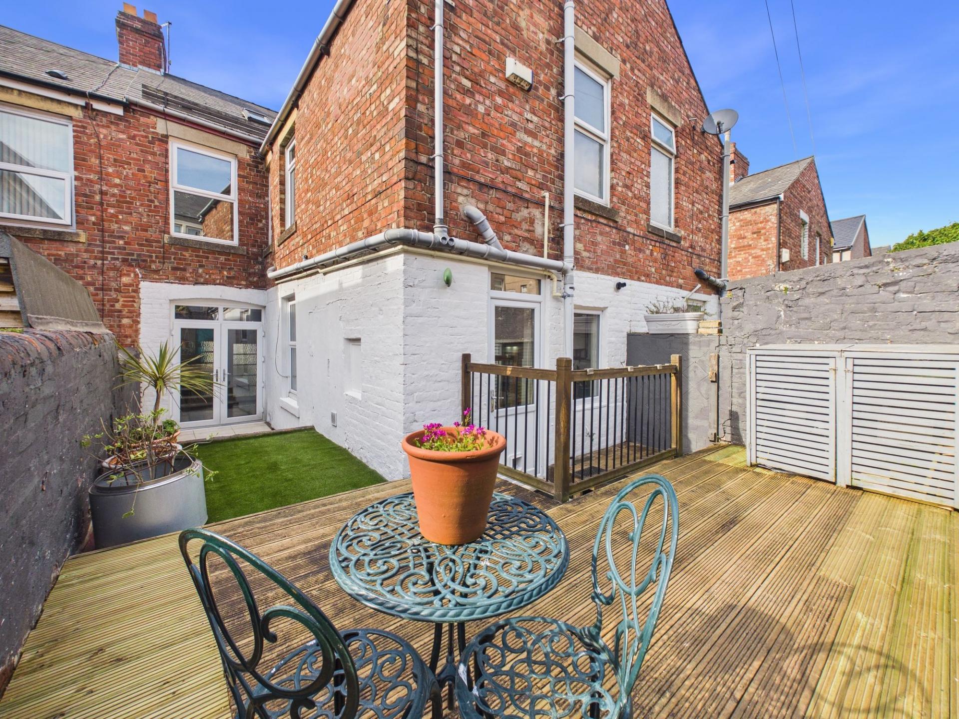 Externally, the property benefits from a town-style garden to the front, whilst the rear showcases a superb enclosed courtyard. Featuring an artificial lawn and a raised decked sun terrace, the outdoor space provides multiple areas for relaxation, alfresco dining, and entertaining, making it an ideal retreat during warmer months.