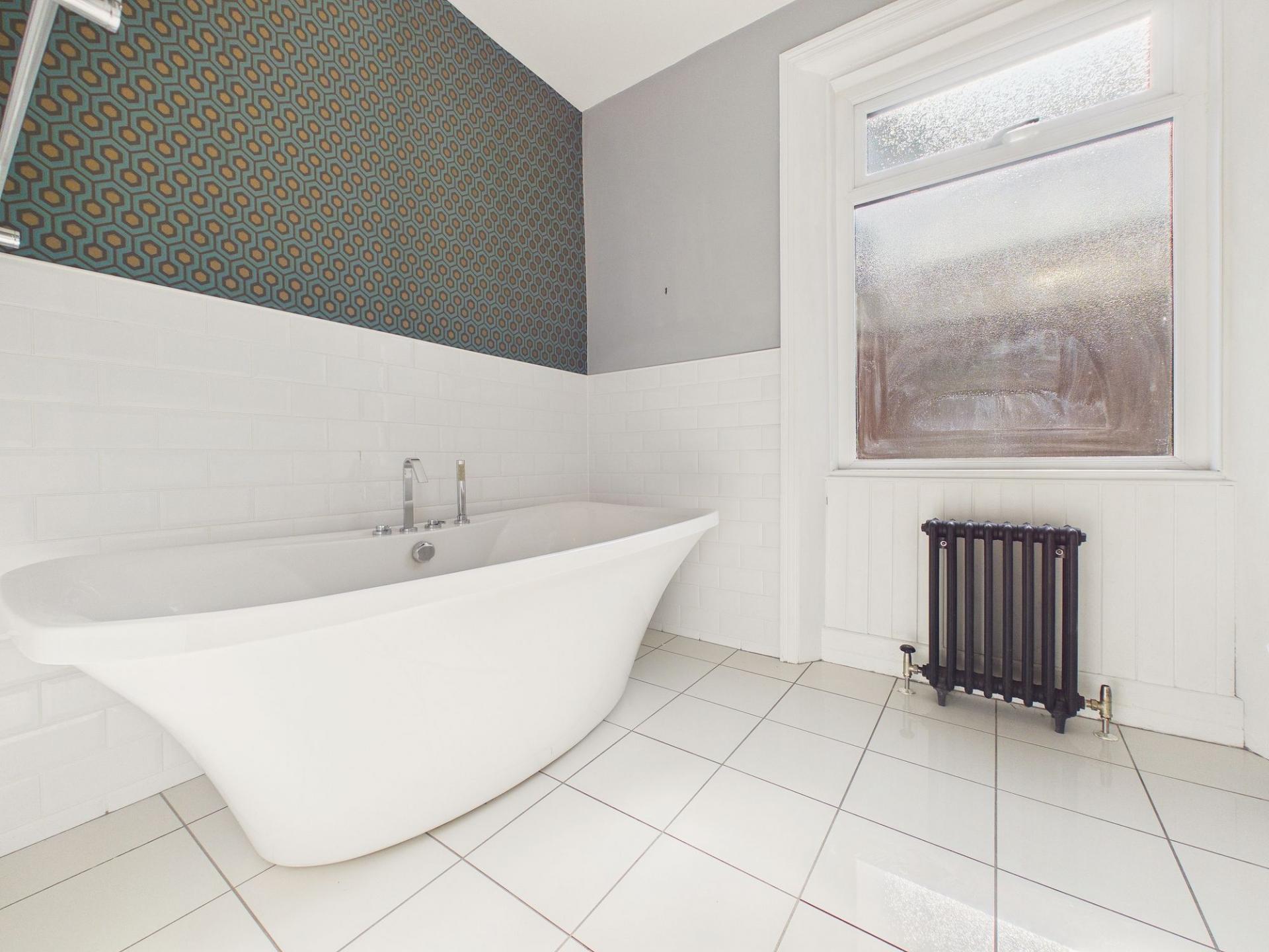The first floor comprises three well-proportioned bedrooms, with the principal bedroom retaining traditional character through ceiling coving, a picture rail, and a decorative fireplace set to the chimney breast. A spacious family bathroom completes this level, beautifully appointed with a freestanding slipper bath, WC, and hand wash basin, offering a luxurious space to unwind, whilst a separate shower room, complete with a walk in shower with a mains fed rainfall style shower over, wc, under floor heating and hand wash basin adds an extra touch of luxury to the home. Two additional bedrooms are located on the second floor, ideal for family, guests, or home office use.