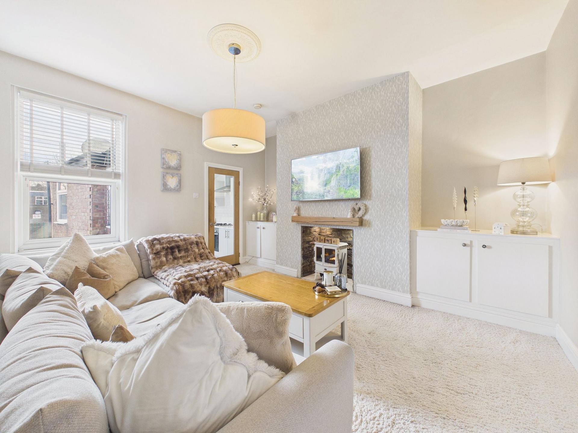 Accessed via a welcoming entrance lobby with staircase leading to the first floor landing. The lounge is positioned to the rear, creating a cosy reception area ideal for both relaxing and entertaining. A charming recess to the chimney breast provides the perfect focal point for display, while built-in storage cupboards to either side offer practical solutions for modern living without detracting from the room’s character.