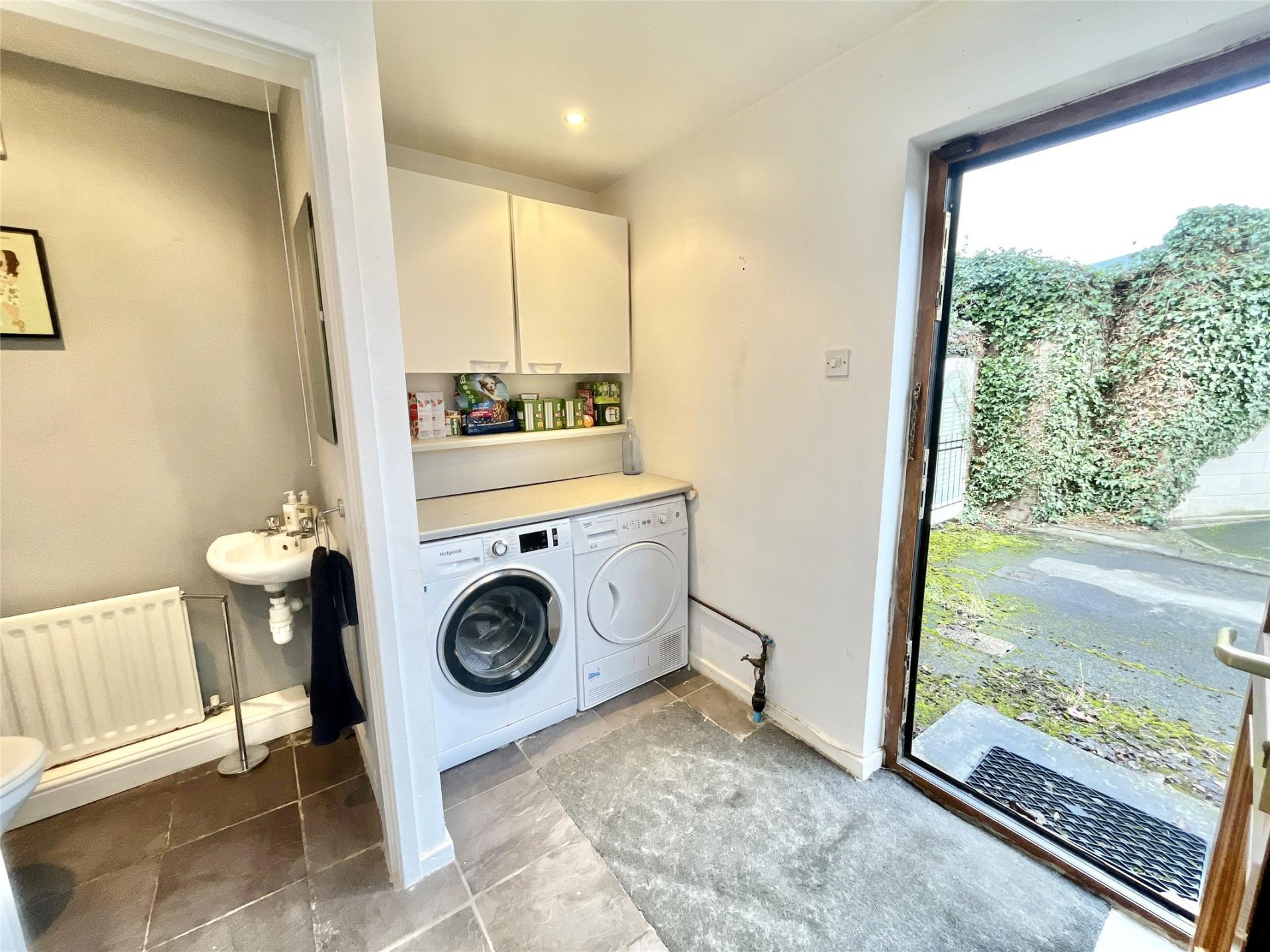 Utility Room 7'7" x 7'5" (2.3m x 2.26m). Accessed via the kitchen with a range of units with plumbing and recess for a washing machine, space for a tumble dryer, tiled floor, central heating radiator, recessed lighting, Velux style window and a double glazed door to the rear aspect with access to the guest cloakroom/wc.
