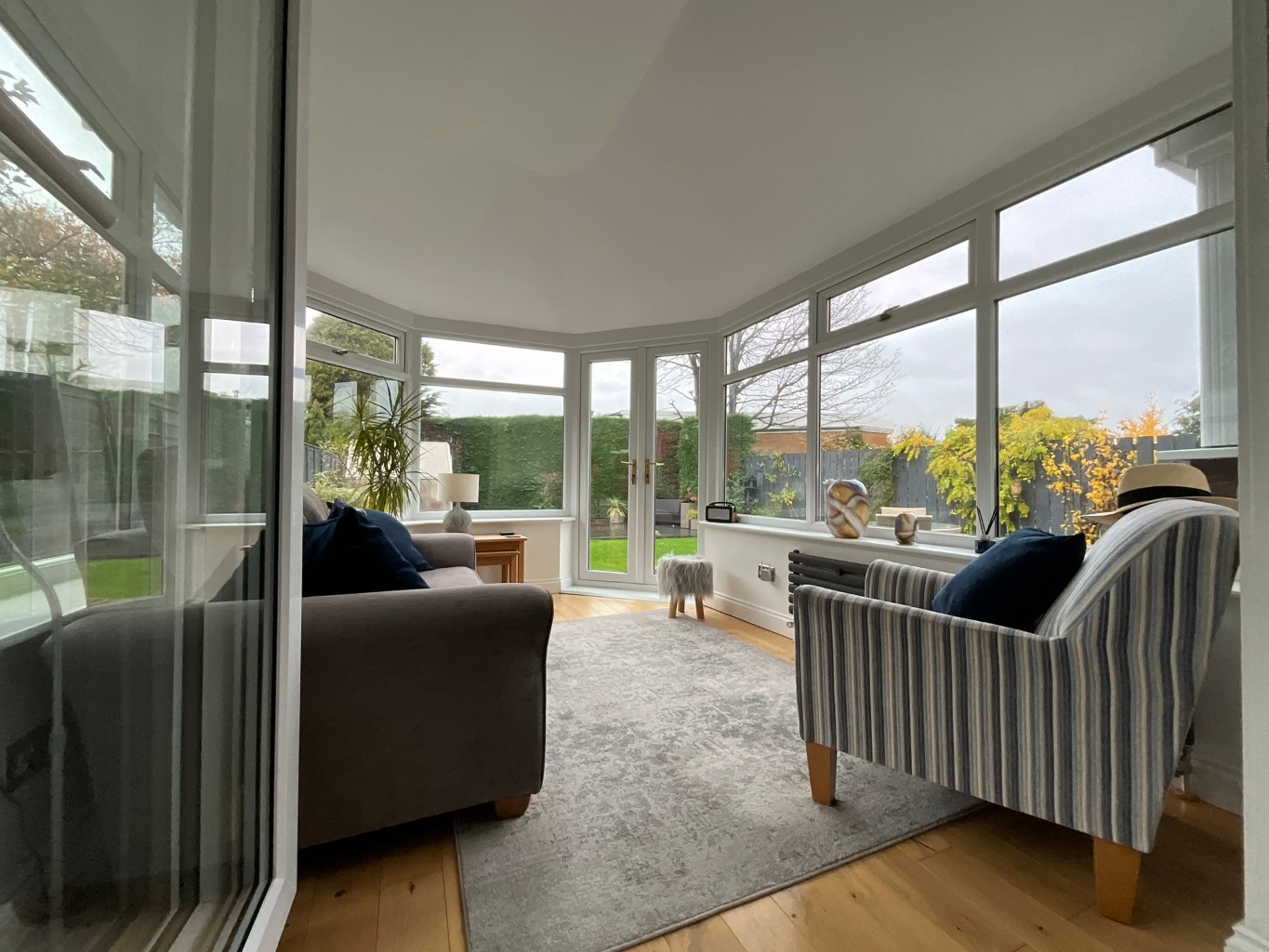 Kitchen (5.76 x 3.23)Features: UPVC double glazed window, radiator, coving to ceiling, range of wall and floor units, contrasting work surfaces, oven, hob, extractor hood, breakfast bar, spotlights to ceiling, bi-fold doors to conservatory.