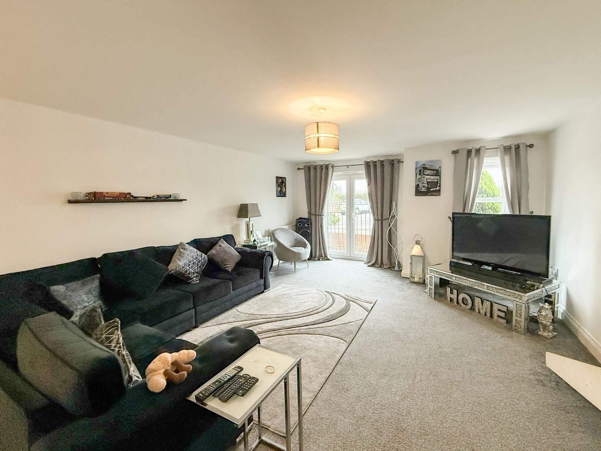 Upon entering, you are welcomed by an inviting entrance hallway that leads into the heart of the home — a stylish open-plan lounge, dining, and kitchen area. The generously proportioned lounge features patio doors that provide direct access to the beautifully tended communal gardens, creating a perfect space for relaxation or entertaining guests.