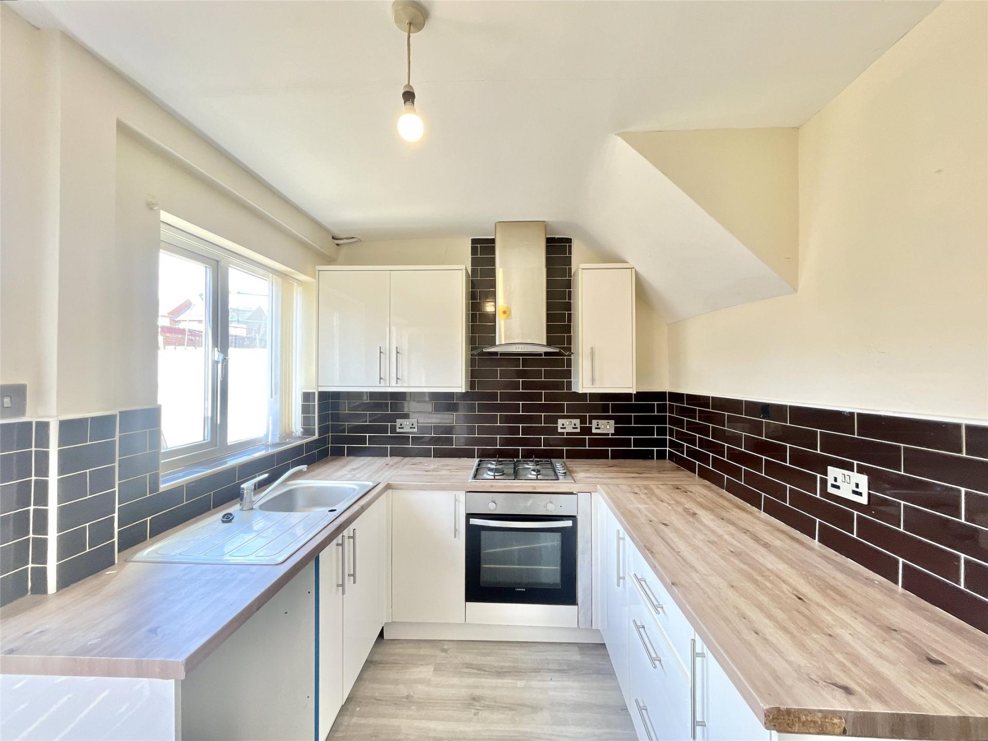 Dining Kitchen 17'10" (5.43m) x 13'3" (4.04m) L Shaped. A lovely open plan room incorporating the kitchen and dining area. The kitchen area has a double glazed window to the rear elevation, a double glazed door to the rear and wood effect flooring. It offers a range of modern wall and base units with work surfaces over, tiled splash back surrounds and incorporates a stainless steel sink unit with drainer and mixer tap fitting. Built in cooking appliances include an electric oven and a gas hob with an extractor positioned over. Under bench space is available for the inclusion of a washing machine and tumble dryer with further space for the inclusion of a free standing fridge/freezer.
