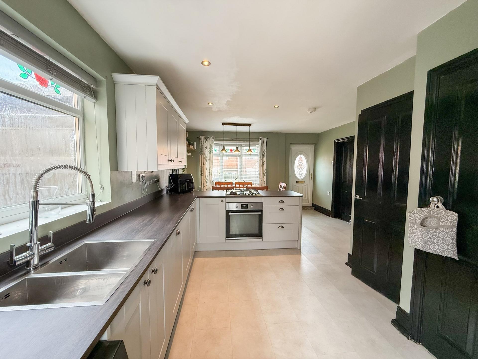 The heart of the home is undoubtedly the impressive open-plan dining kitchen  a perfect blend of functionality and style. The kitchen area is fitted with a sleek range of base and wall units, complete with built in cooking appliances, offering ample storage and worktop space for modern living. The adjoining dining area is shown to accommodate a dining table and chairs, making it ideal for family meals or entertaining guests.