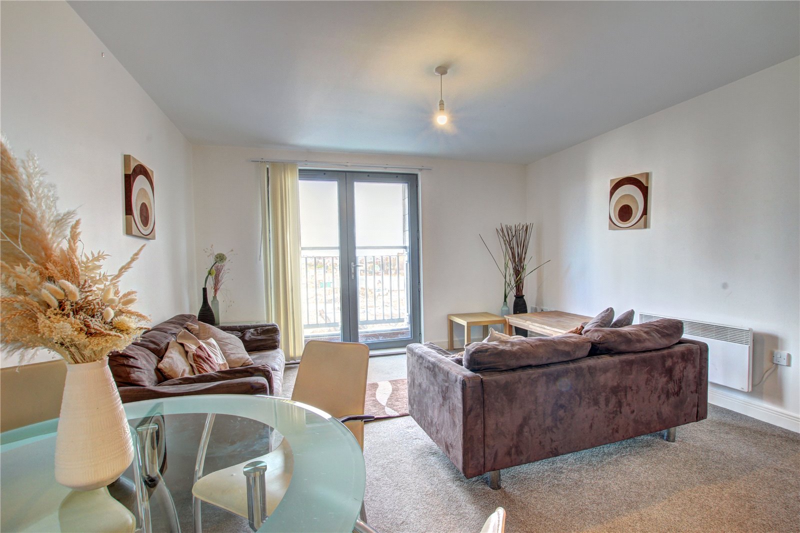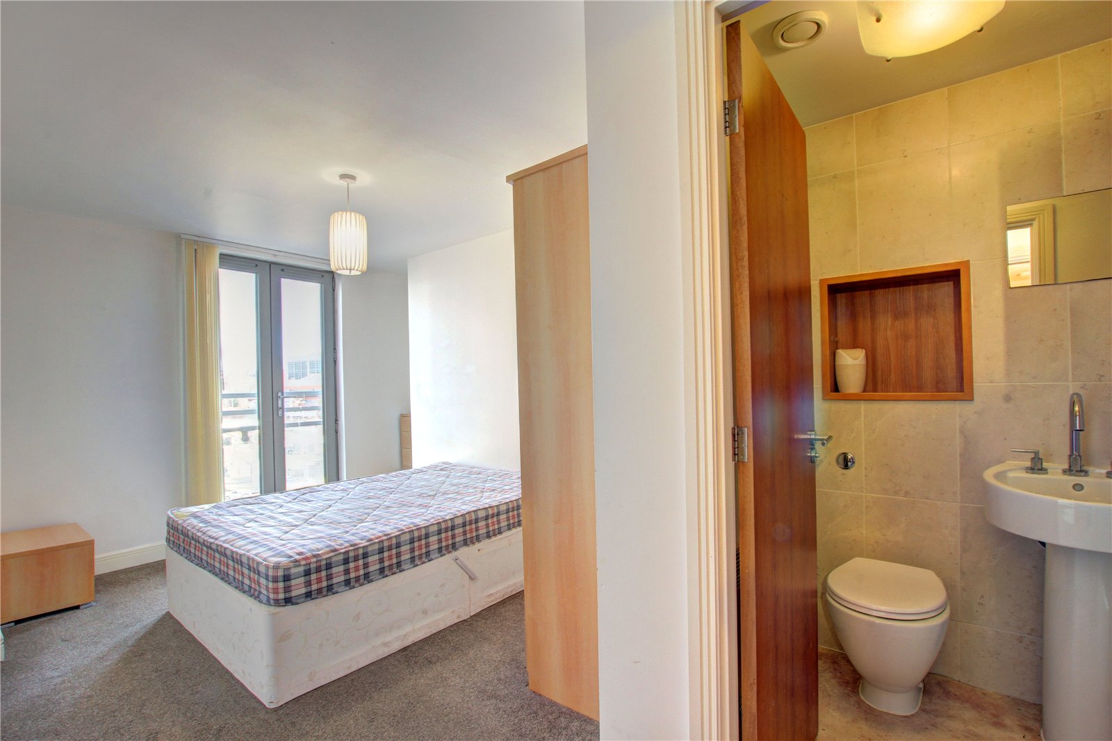 Double glazed doors with Juliet Balcony, wall mounted electric heater.