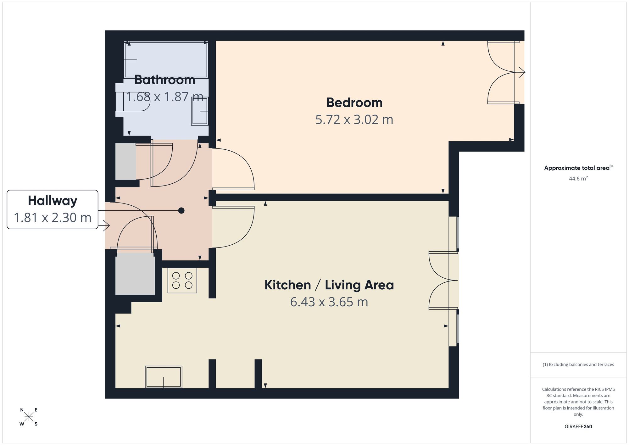 The apartment welcomes you with a well-proportioned entrance hallway, thoughtfully designed with two built-in storage cupboards, one of which provides space and plumbing for the inclusion of a washing machine, keeping the main living areas streamlined and clutter-free.
