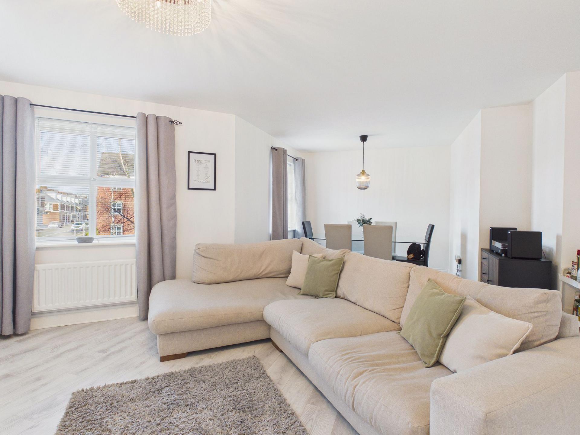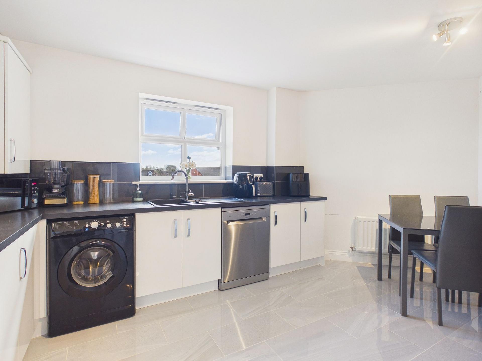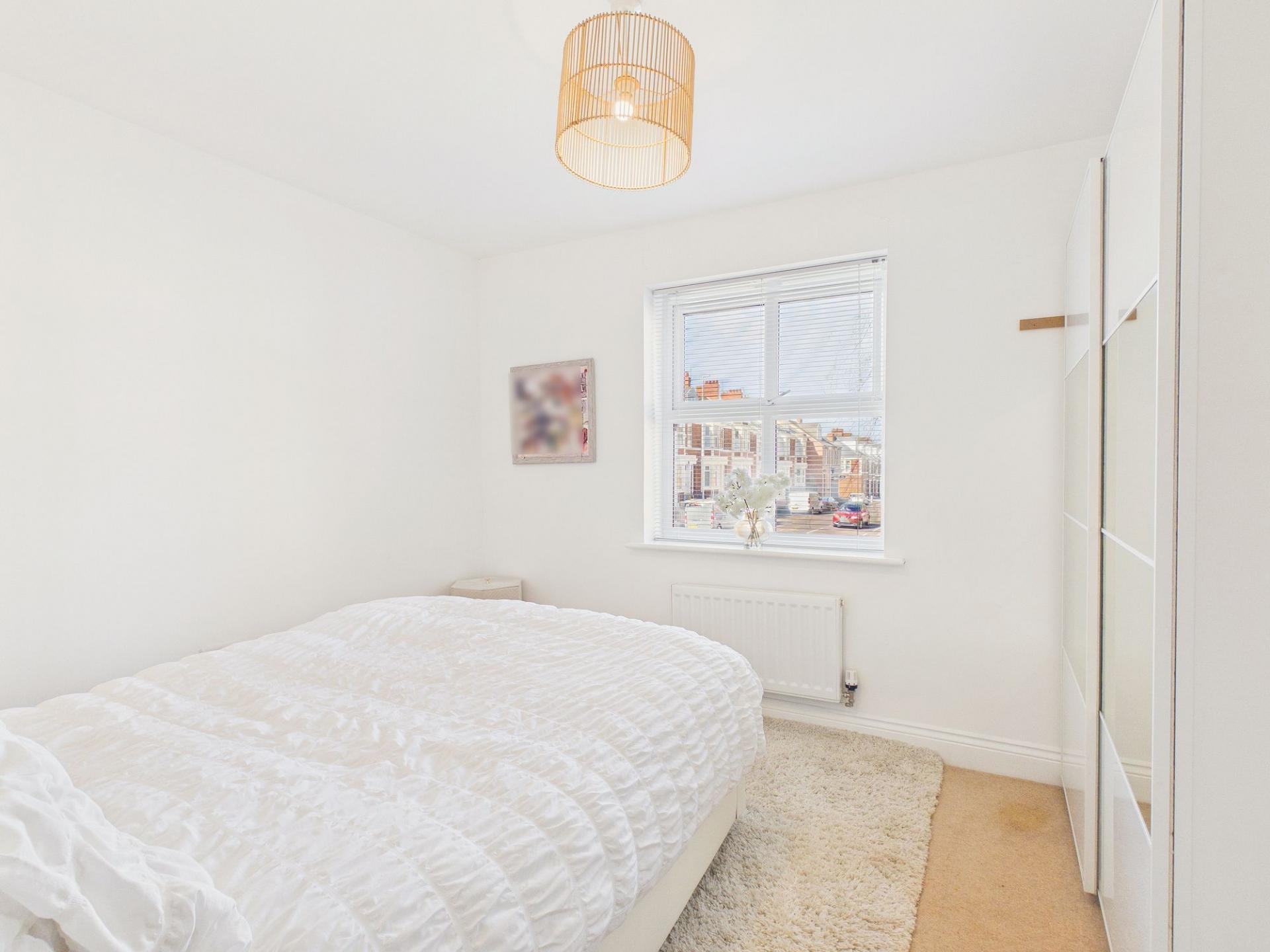 The property comprises three comfortable bedrooms, with the principal bedroom benefiting from fitted wardrobes along one wall, offering excellent storage solutions. A stylish bathroom completes the accommodation, fitted with a white suite and a convenient shower over the bath.