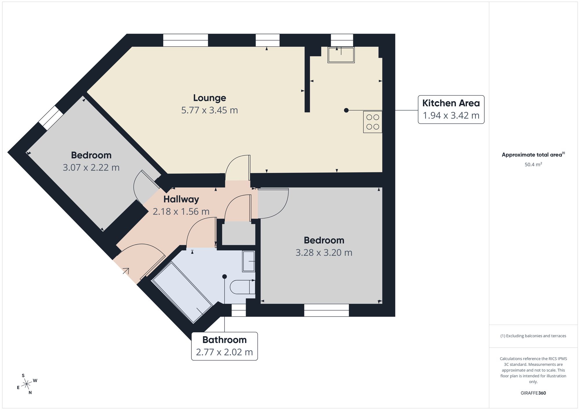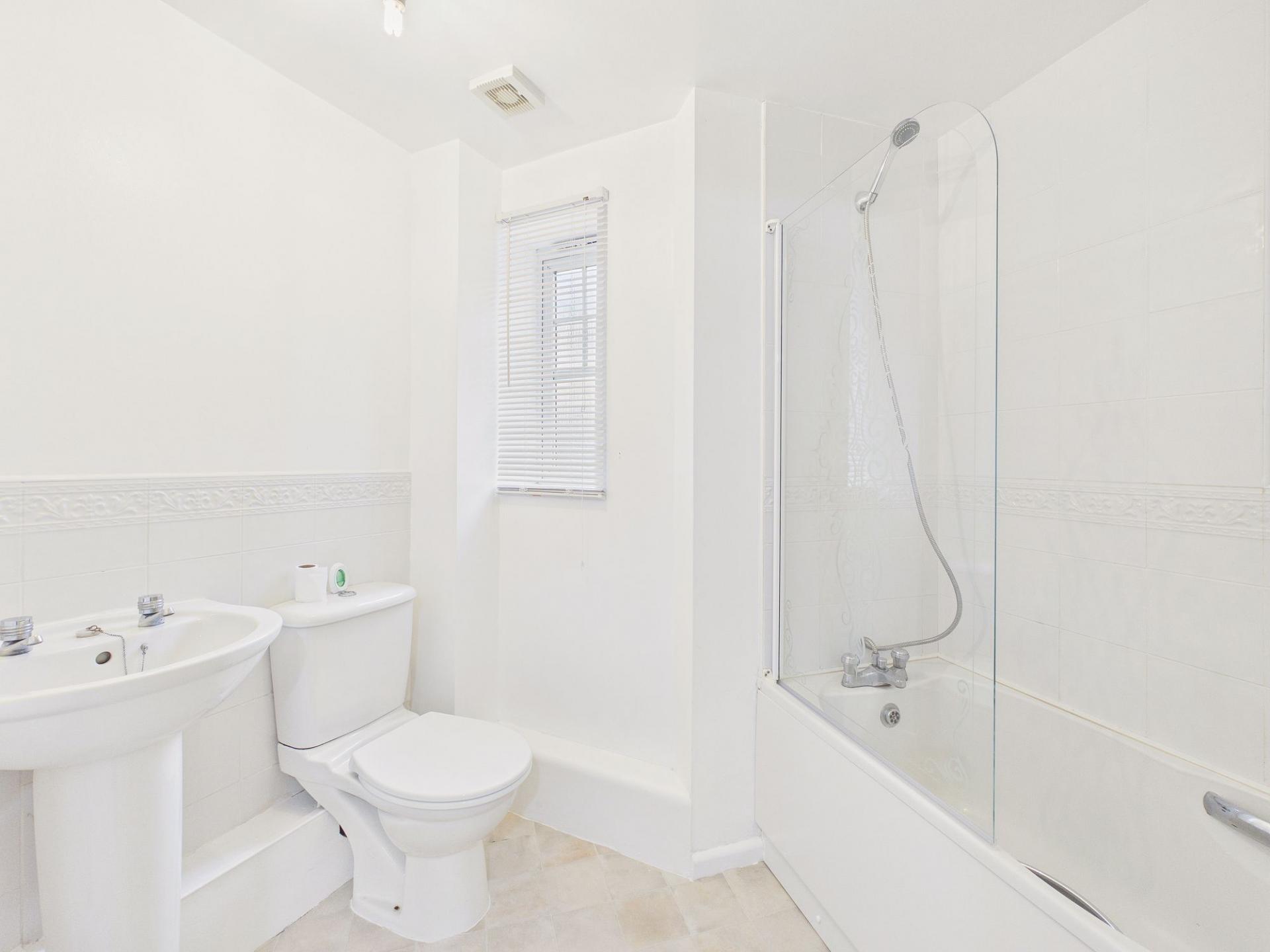 The apartment comprises two well-proportioned bedrooms. The bathroom is fitted with a modern white suite.