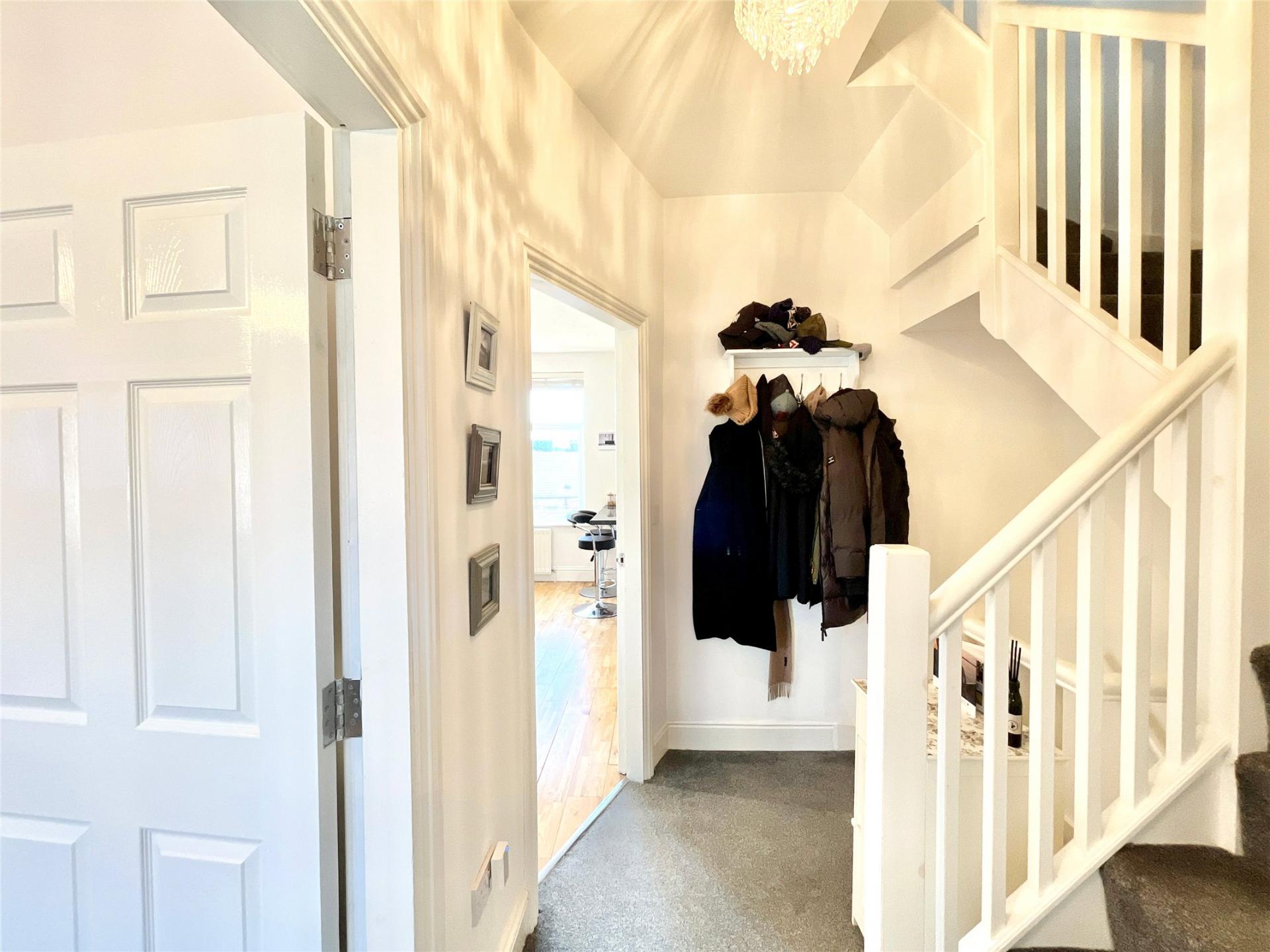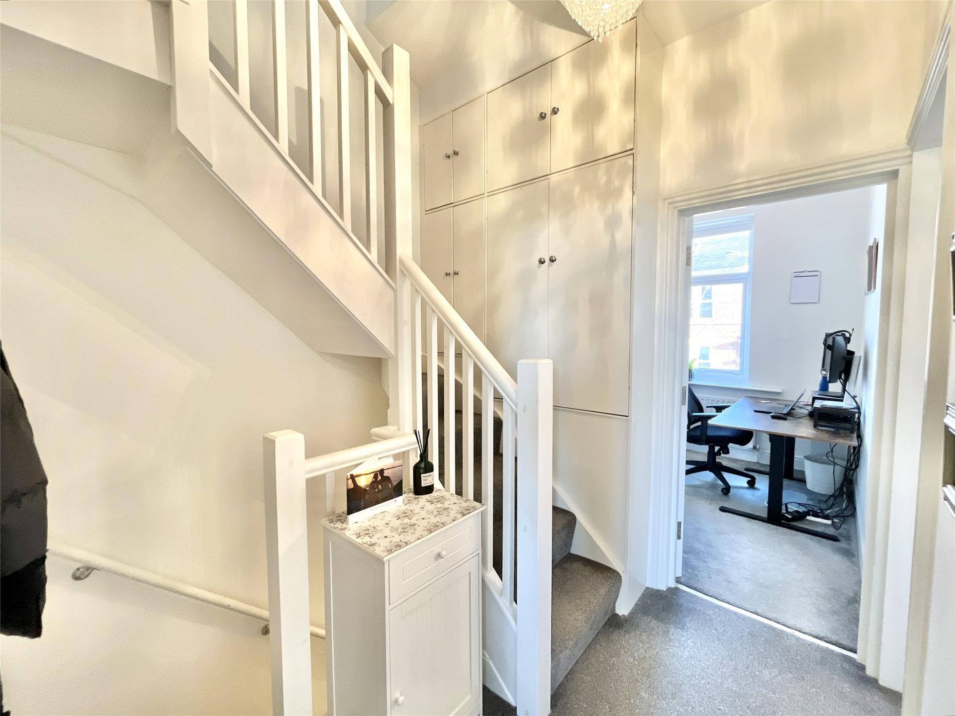 First Floor Landing With a continuation of the staircase to the second floor and having built in storage cupboards.