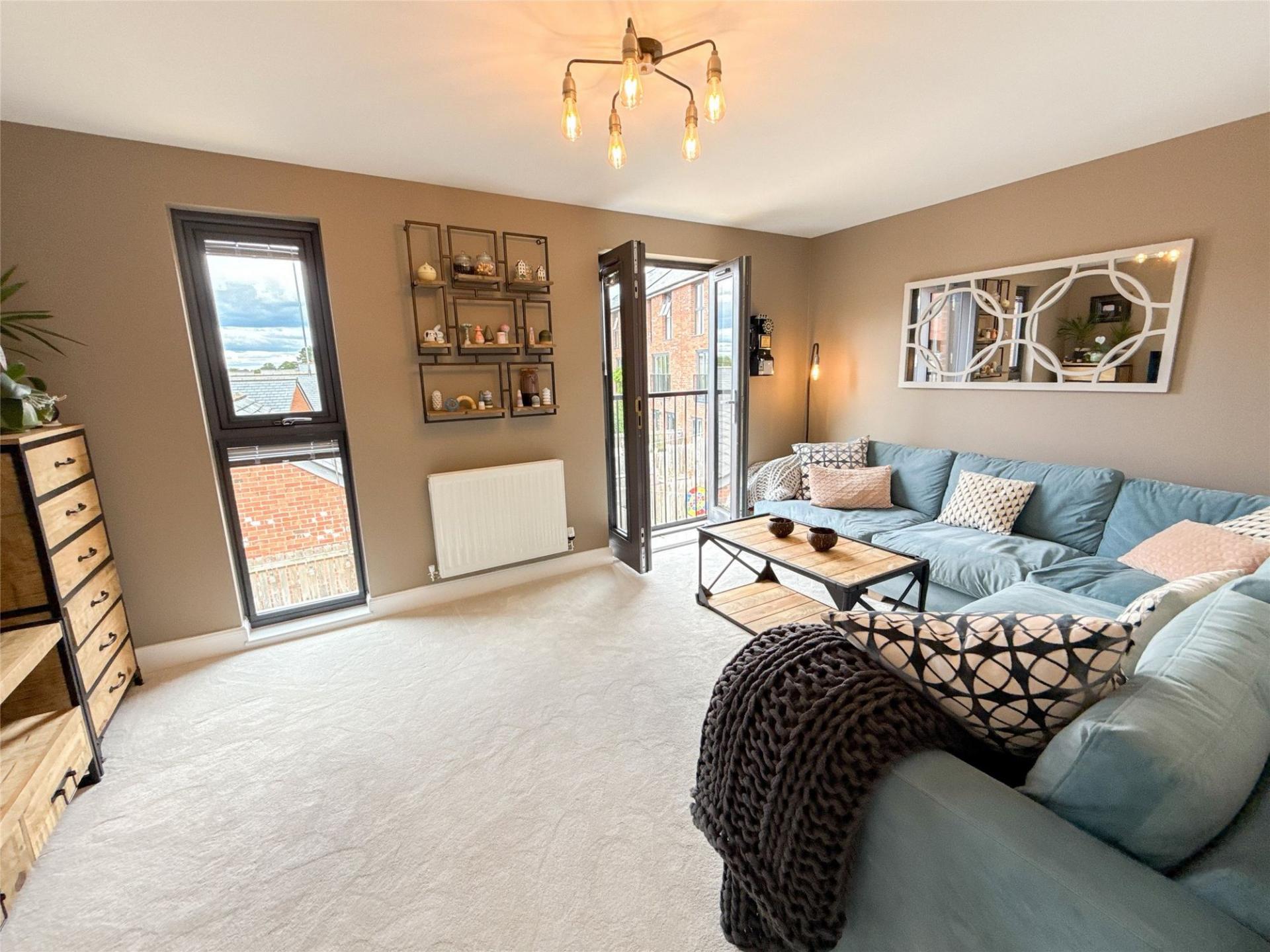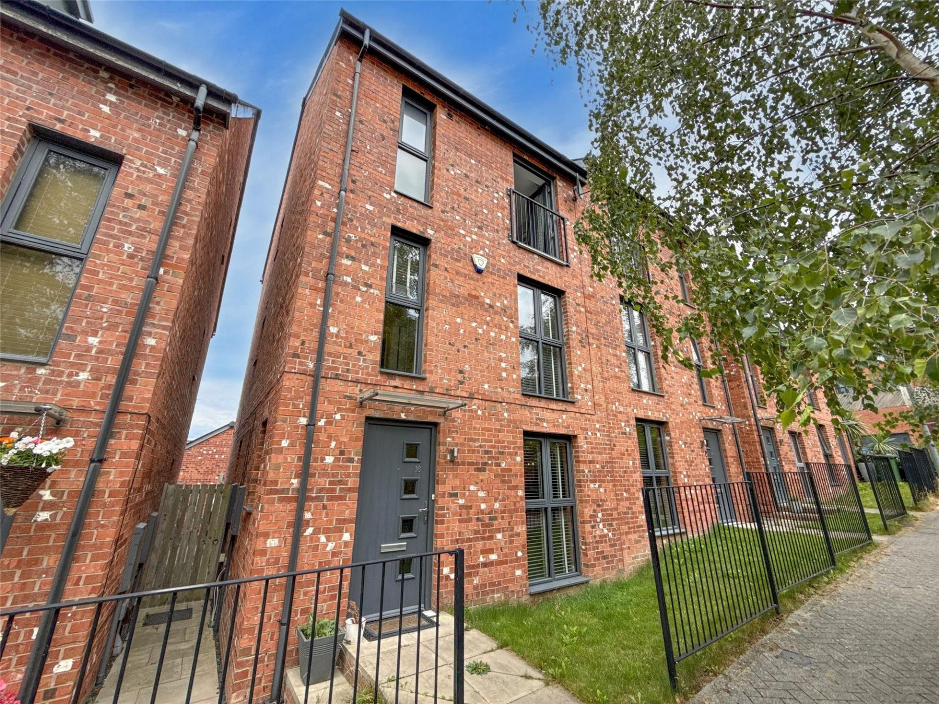 The first floor plays host to a beautifully presented lounge, enhanced by patio doors leading to a Juliet-style balcony. Also on this floor is thefourth bedroom, which could also serve as a study or guest room, as well as the impressive family bathroom. The bathroom is equipped with a mains-fed rainfall-style shower over the bath, a sleek floating vanity unit with an inset hand wash basin, and a modern WC.