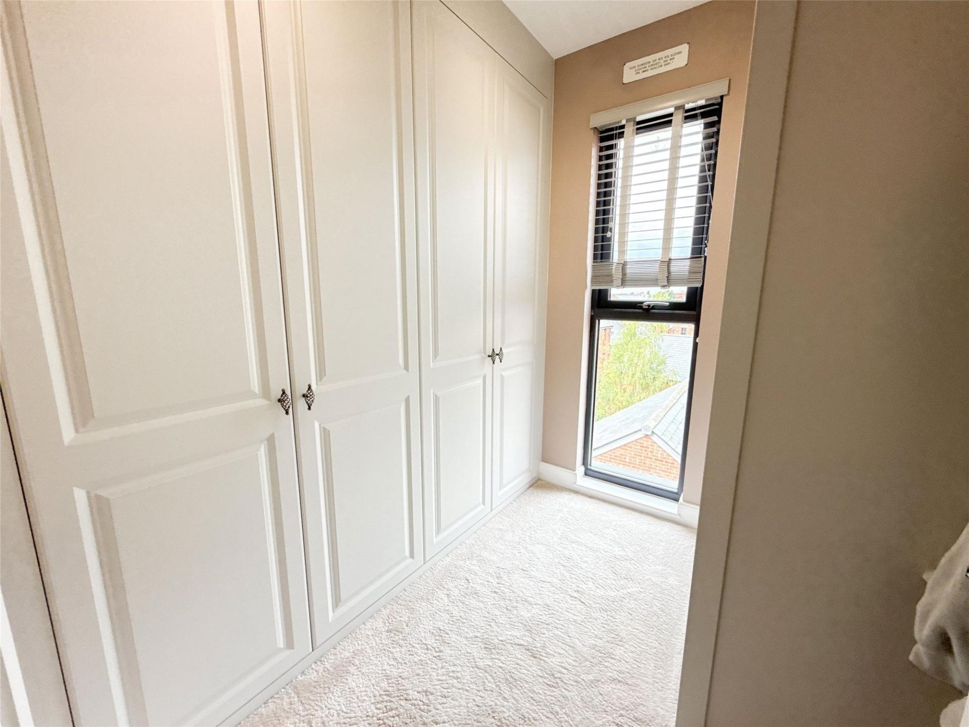 Moving to the second floor, you will find the generously sized master bedroom which benefits from built-in wardrobes and patio doors that open onto another Juliet-style balcony. This bedroom also enjoys access to a luxurious en-suite shower room. Two further bedrooms are located on this floor, one of which also benefits from built-in wardrobes, making the space both practical and inviting. From the landing, there is a loft access hatch, the loft space being accessed via pull down ladders and has been boarded and has shelving for storage.