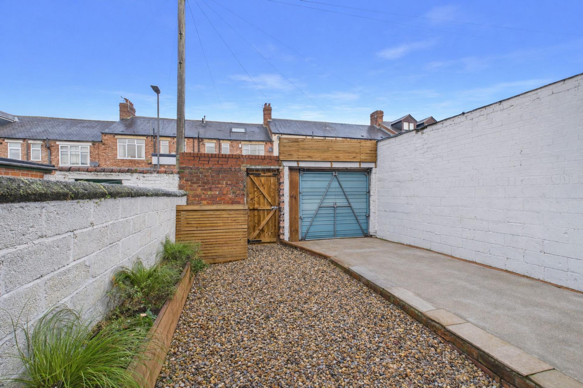 Externally, the property benefits from a charming, block paved town-style garden to the front, adding to its kerb appeal. To the rear is an enclosed courtyard designed for outdoor enjoyment, featuring a timber decked patio area, gravelled section and raised planter. A garage door to the rear of the courtyard provides access to the rear service lane and leads to a hard-standing driveway, offering valuable off-street parking.