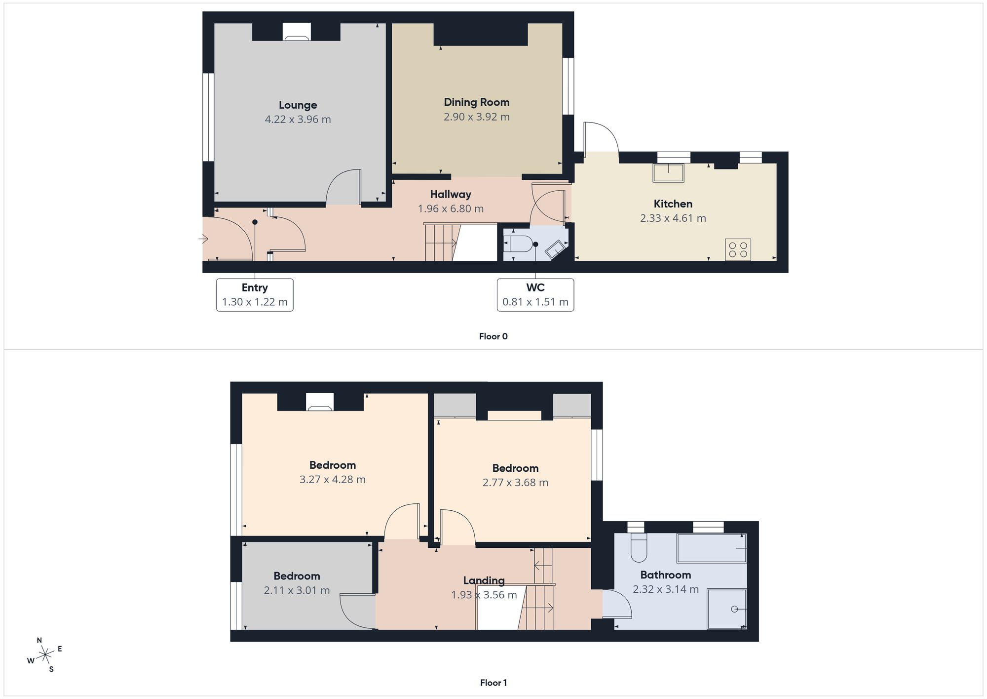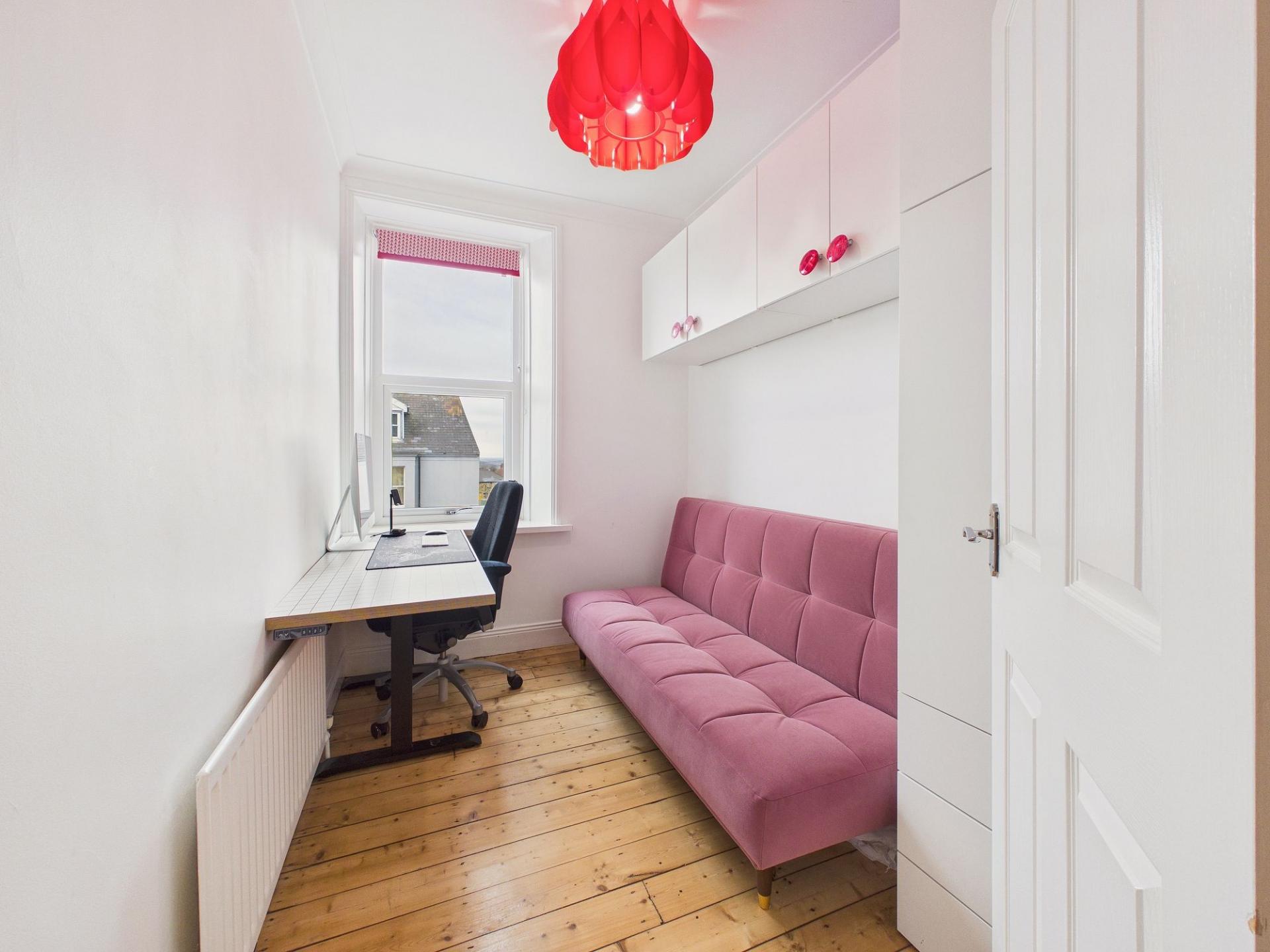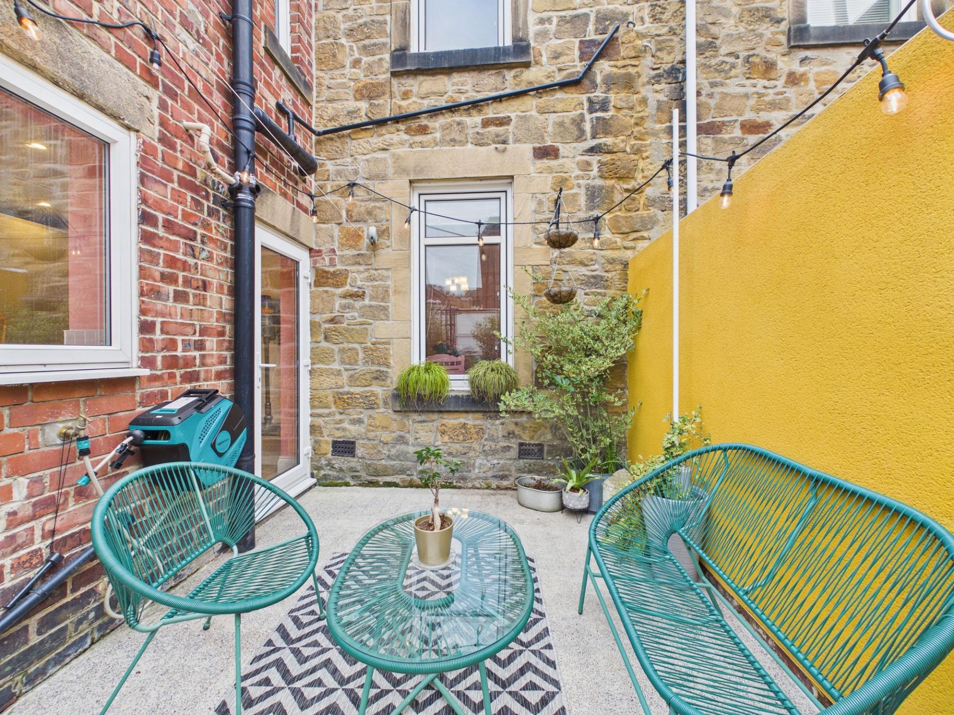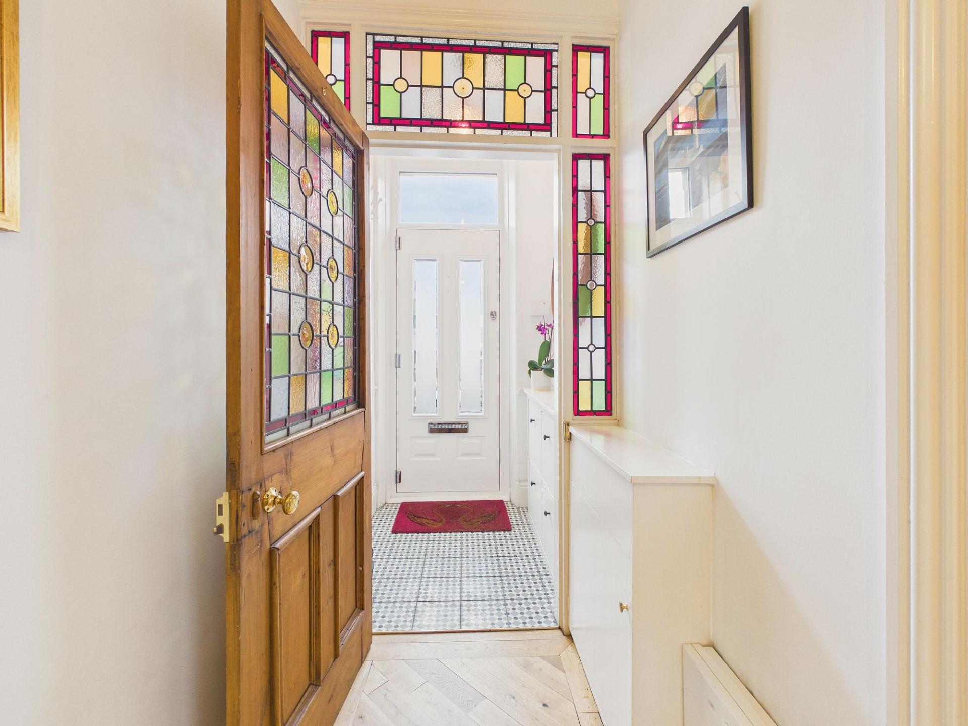 The property is entered via a traditional vestibule featuring striking stained glass, which in turn leads you through to a stunning entrance hallway complete with sanded floorboards and decorative coving. From here, there is open access to the dining area and kitchen at the rear. The front facing lounge is elegant and inviting, showcasing a feature fireplace with tiled insert, along with coving and a ceiling rose. The dining room is equally impressive, featuring bespoke joinery and a cast iron fireplace with an attractive surround. To the rear aspect, the stylish kitchen offers a range of fitted units complemented by contrasting worktops, a contemporary tiled splashback and an enamel sink. Integrated appliances include a fridge/freezer and dishwasher, alongside a modern range style oven. A Velux style window enhances the space and allows additional natural light, whilst the rear door provides access to the enclosed courtyard. A ground floor WC completes the ground floor living space.