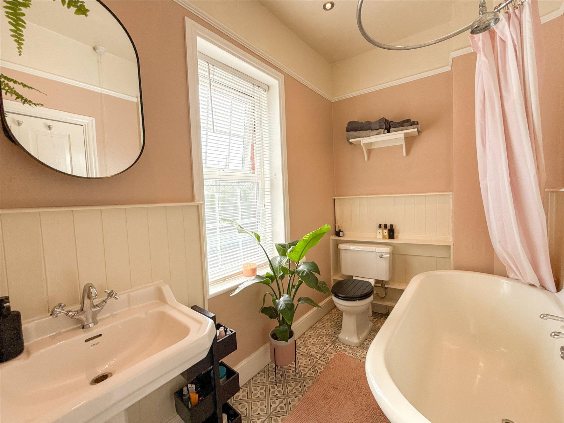 Completing the upper level, the family bathroom exudes traditional styling with its roll top bath, hand wash basin and WC, the perfect space to unwind.