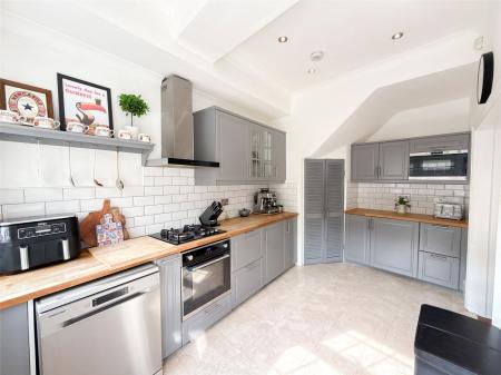 Upon entering, you are welcomed by an inviting entrance hallway with decorative faux panelling to dado rail height, setting the tone for the style and attention to detail found in the remainder of the property. The beautiful lounge immediately impresses with coving to the ceiling, a central ceiling rose, and a picture rail, all of which enhance the room’s classic appeal. A striking recessed chimney breast houses a log burner-style stove, providing a cosy focal point, while one of the alcoves features a bespoke built-in storage unit for both practicality and display.