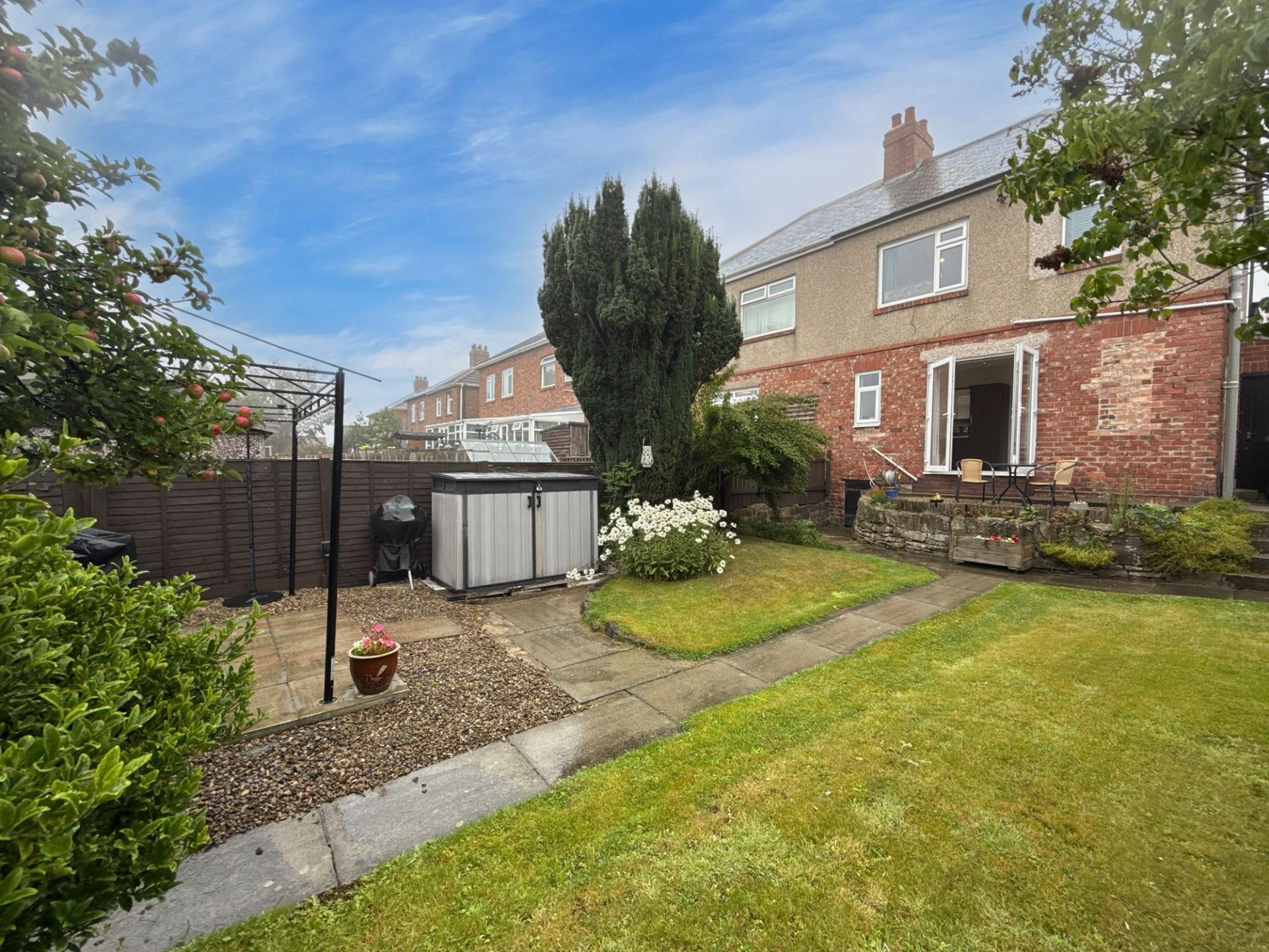 The rear garden is a true delight and has been thoughtfully landscaped to provide both functionality and beauty. West-facing and enclosed, the garden features a well-tended lawn, a raised gravelled seating area perfect for enjoying a morning coffee or evening drink, and a separate paved patio ideal for entertaining. Mature shrubs and flowering plants add vibrant seasonal colour.