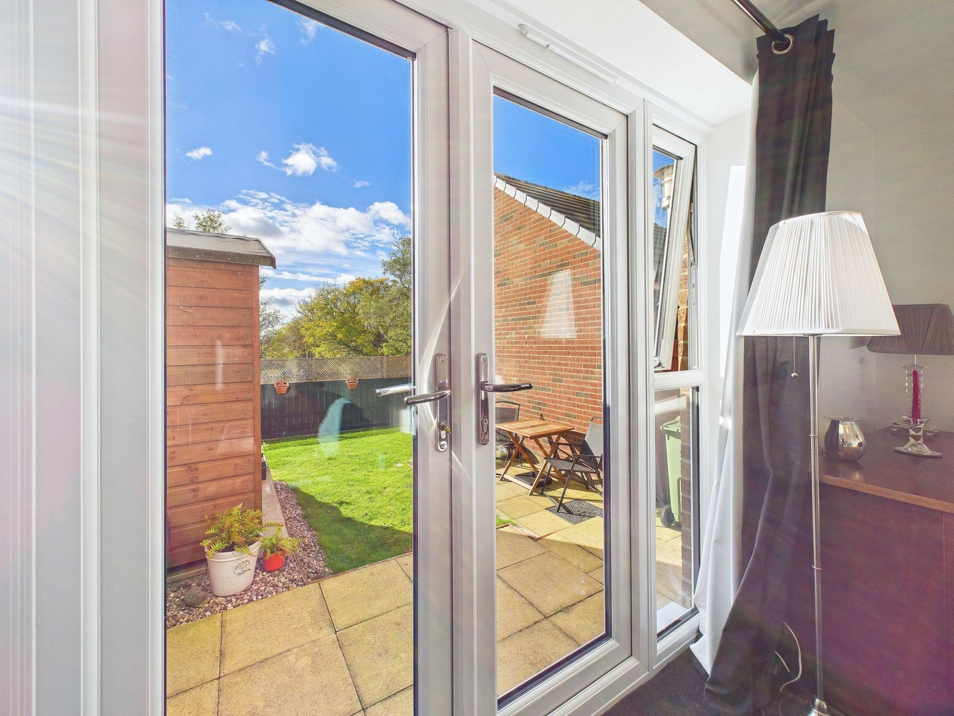 Internally, the living space includes a welcoming entrance hallway with a guest WC for added convenience. The spacious lounge is positioned to the rear of the home, with patio doors that open directly onto the garden, creating a seamless indoor-outdoor flow.