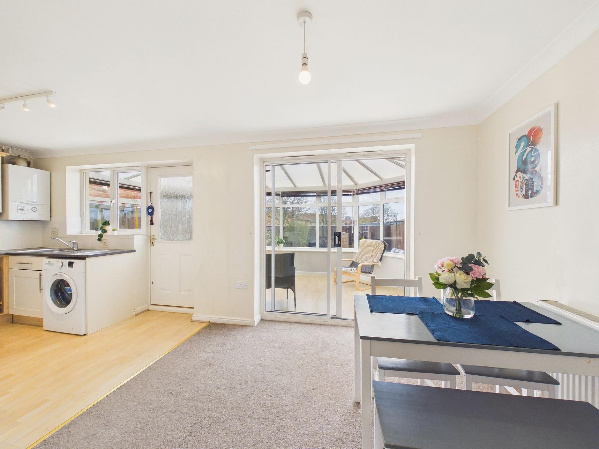 The kitchen is thoughtfully designed with a range of wall and base units and built in cooking appliances, offering ample space for essential appliances such as a washing machine, dishwasher, and fridge/freezer. The adjoining dining area easily accommodates a table and chairs, with a sliding patio door that opens into the conservatory, a delightful addition to this home. The conservatory overlooks the rear garden, providing an ideal space for relaxing or entertaining, with patio doors that lead directly onto the garden.