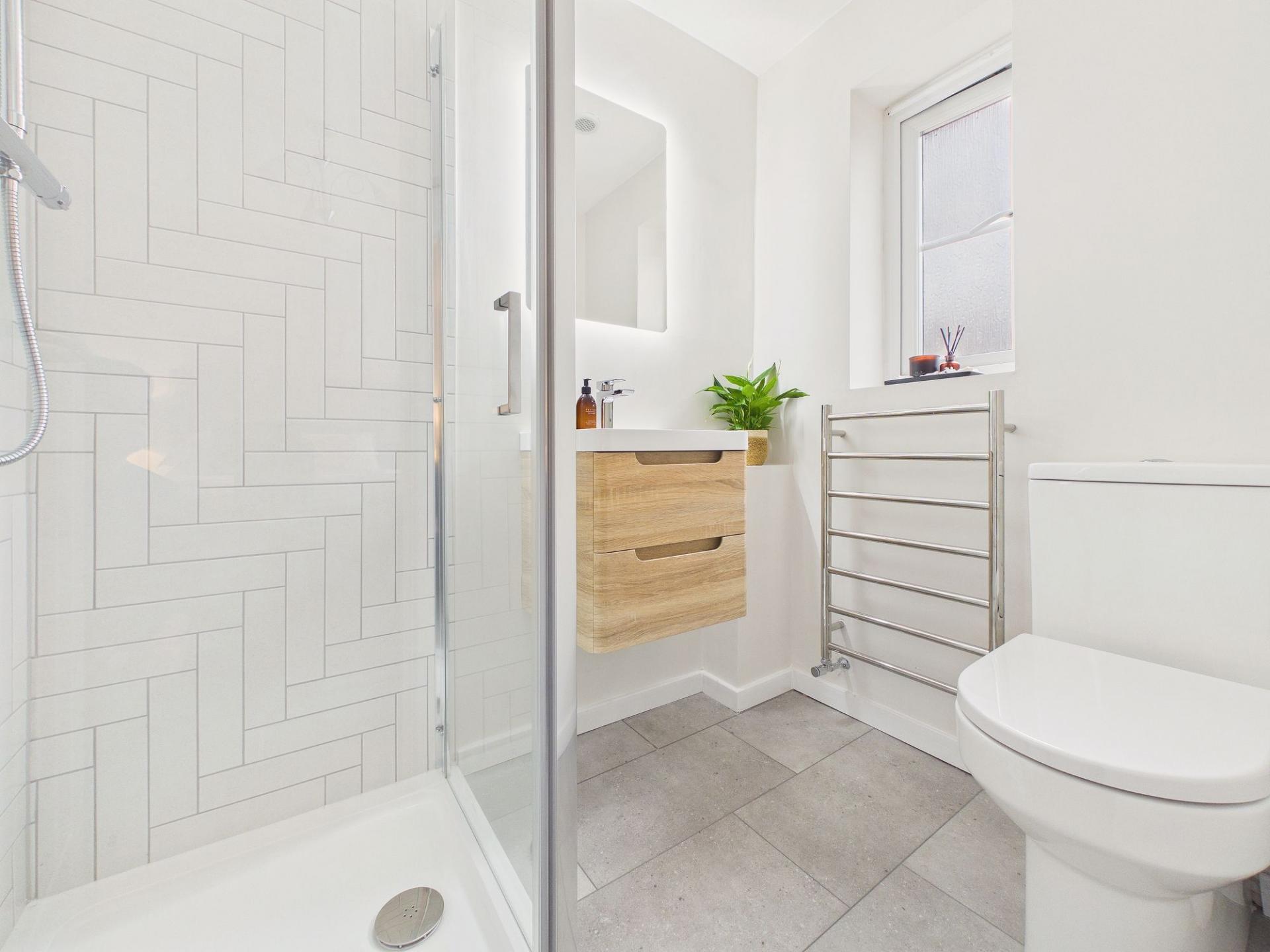 To the first floor, the property continues to impress with four well-proportioned bedrooms, all thoughtfully laid out to provide comfort and flexibility. The principal bedroom benefits from a beautifully appointed en-suite shower room, finished with modern fittings and elegant detailing. The recently refurbished family bathroom is simply stunning, featuring a luxurious freestanding bath that creates a true spa-like retreat.