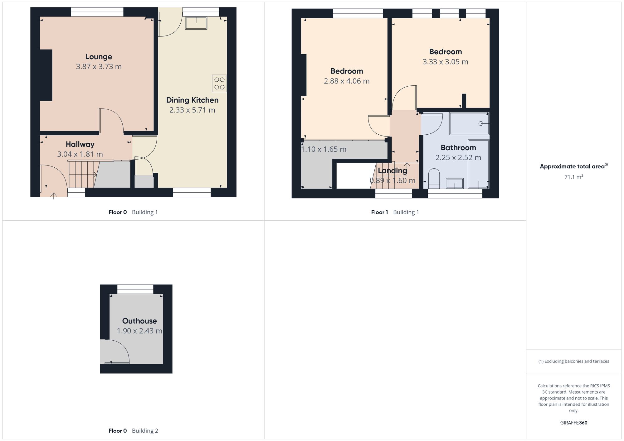 The first floor offers two well-proportioned double bedrooms, both tastefully decorated. The main bedroom benefits from built-in storage, providing wardrobe. Completing the accommodation is a stunning bathroom, equipped with a bath, a walk-in shower enclosure with a mains-fed shower, a hand wash basin set within a contemporary vanity storage unit, and a low-level WC. The bathroom’s modern finish adds a touch of luxury to this charming home.