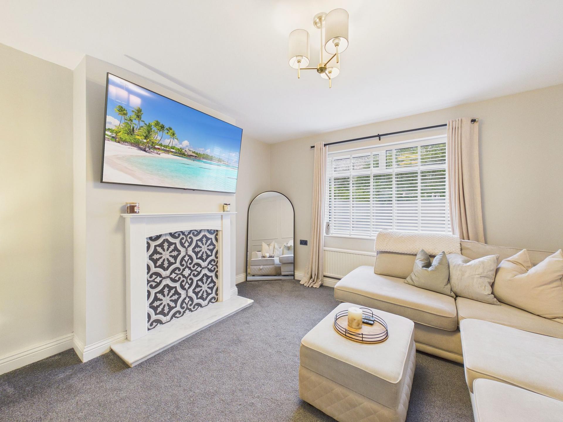 Upon entering, you are welcomed by an entrance hallway that sets the tone for the rest of the property. The beautiful lounge provides a warm and inviting atmosphere, featuring a striking decorative fire surround set to the chimney breast, creating an attractive focal point and a cosy space in which to relax or entertain guests.