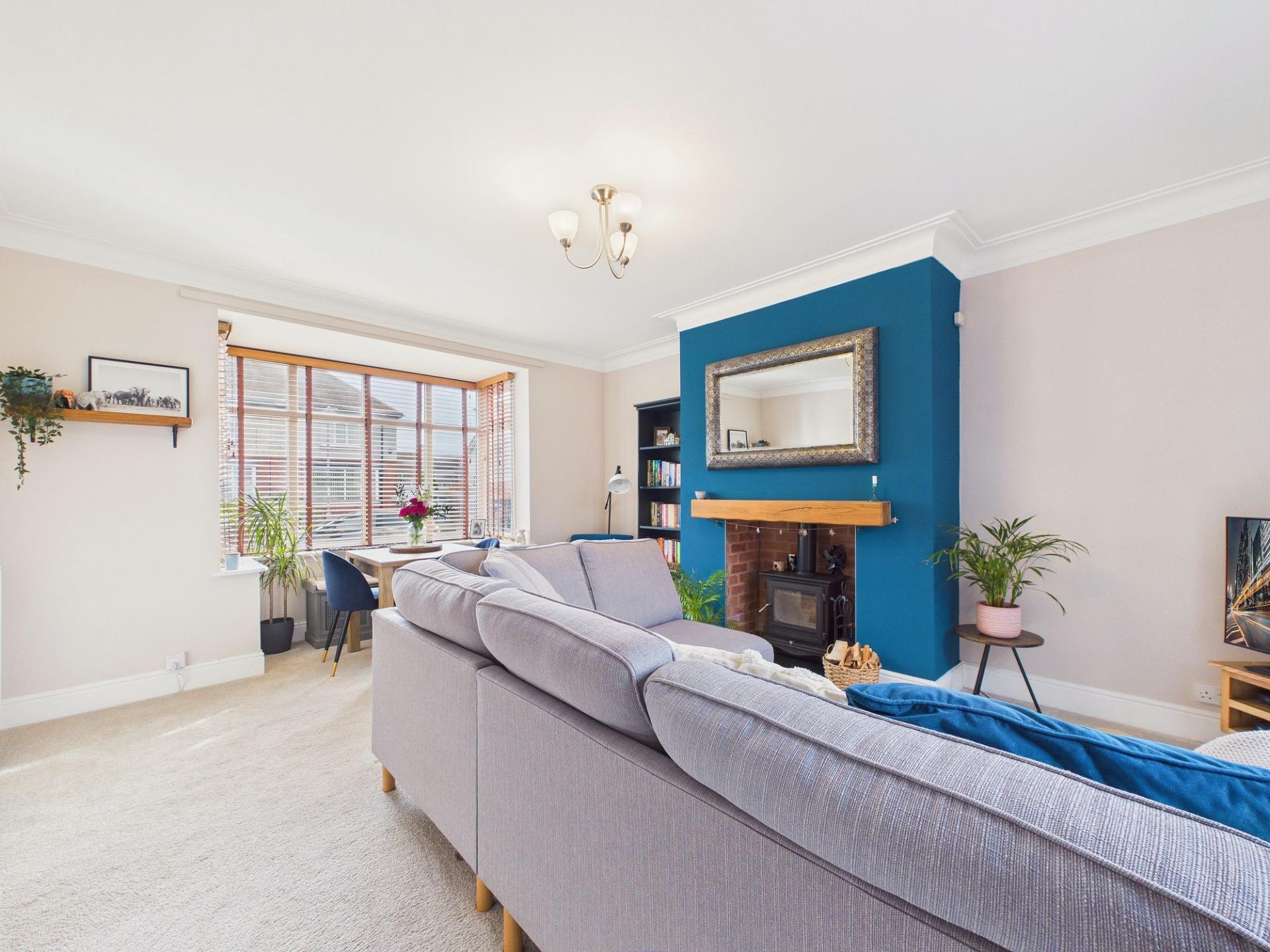 Upon entering, you are welcomed by an inviting entrance hallway which sets the tone for the accommodation beyond. The heart of the home is the beautiful dual aspect lounge, a wonderful reception room enhanced by a charming bay window to the front elevation. A recess to the chimney breast houses a cosy log burning stove, creating a warm focal point ideal for relaxing evenings. To the rear, patio doors open directly onto the garden, seamlessly blending indoor and outdoor living and providing an ideal space for entertaining family and friends.