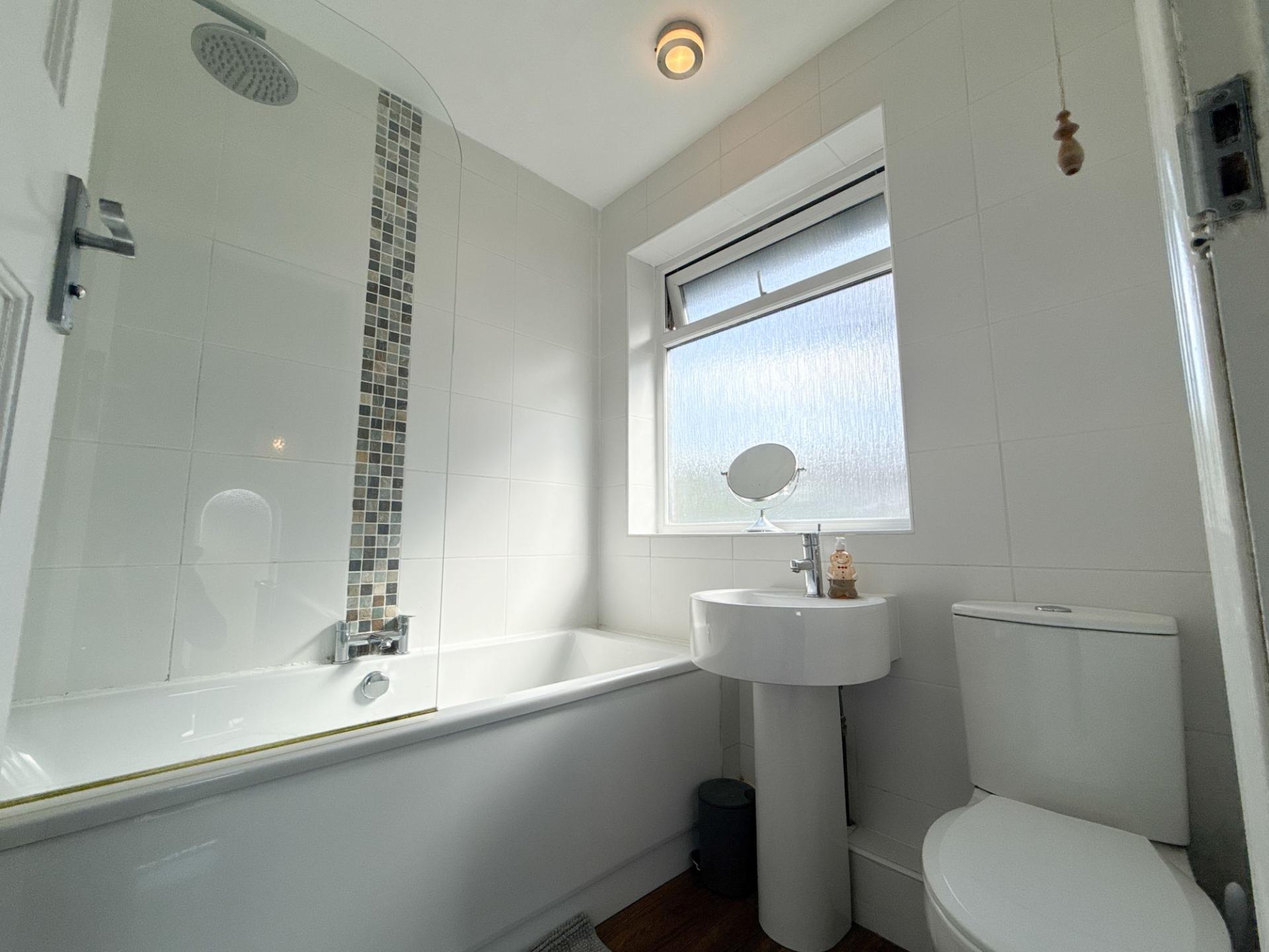 Upstairs, the first floor landing features an arched window, there are two double bedrooms and a beautifully appointed bathroom complete with a rainfall-style shower over the bath, combining luxury with functionality.