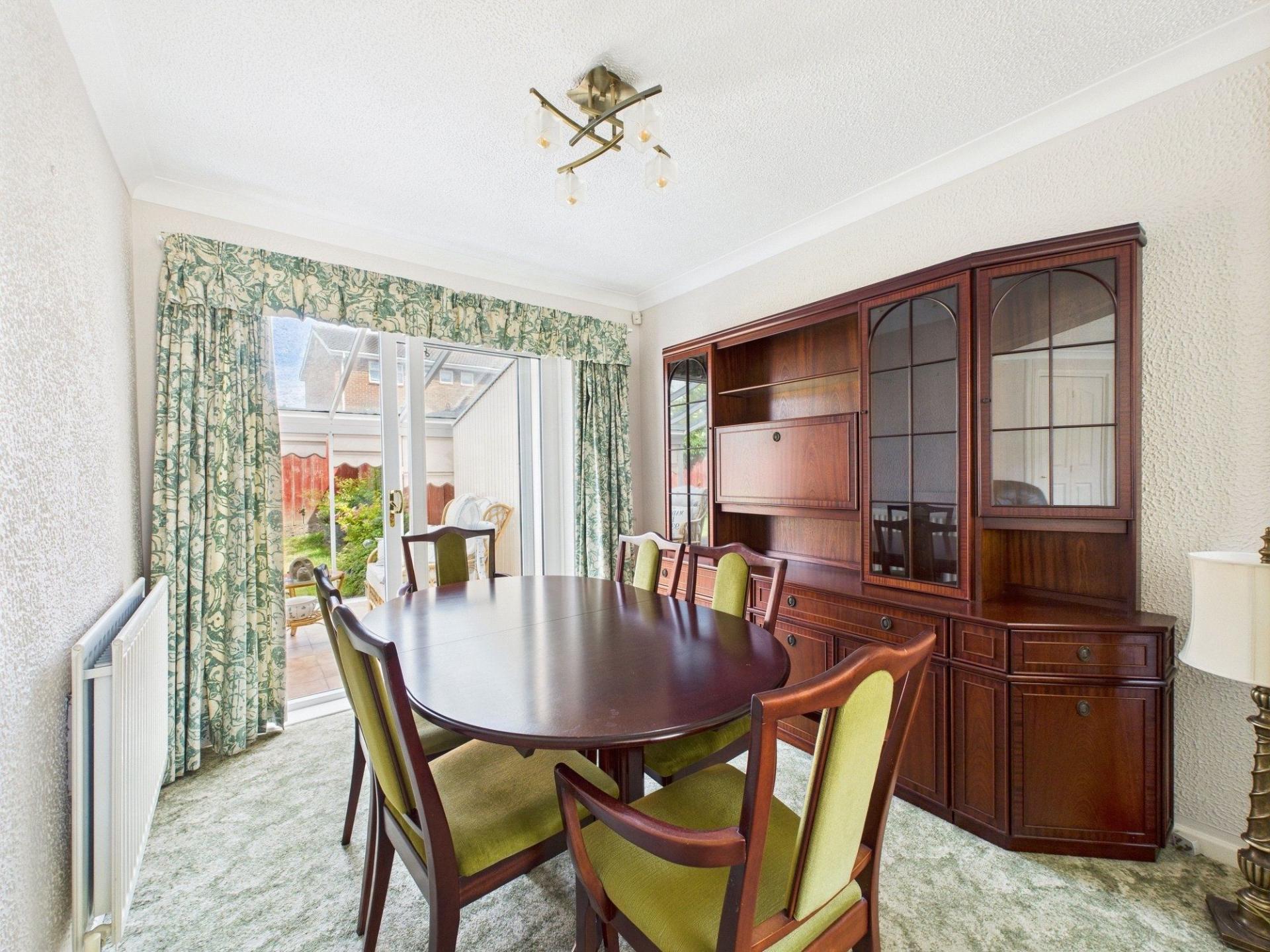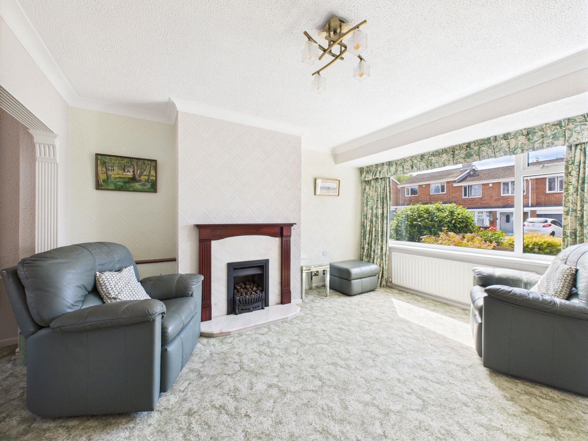 Upon entering the property, you are welcomed by a useful entrance porch which opens into an inviting lounge. This spacious reception area is enhanced by a picture window to the front elevation whilst a striking fireplace set into the chimney breast serves as a charming focal point. The lounge offers open access through to the dining area. Perfect for entertaining or family gatherings, the dining space features sliding patio doors that open directly into the conservatory, creating a lovely connection to the rear garden and adding to the overall sense of space.