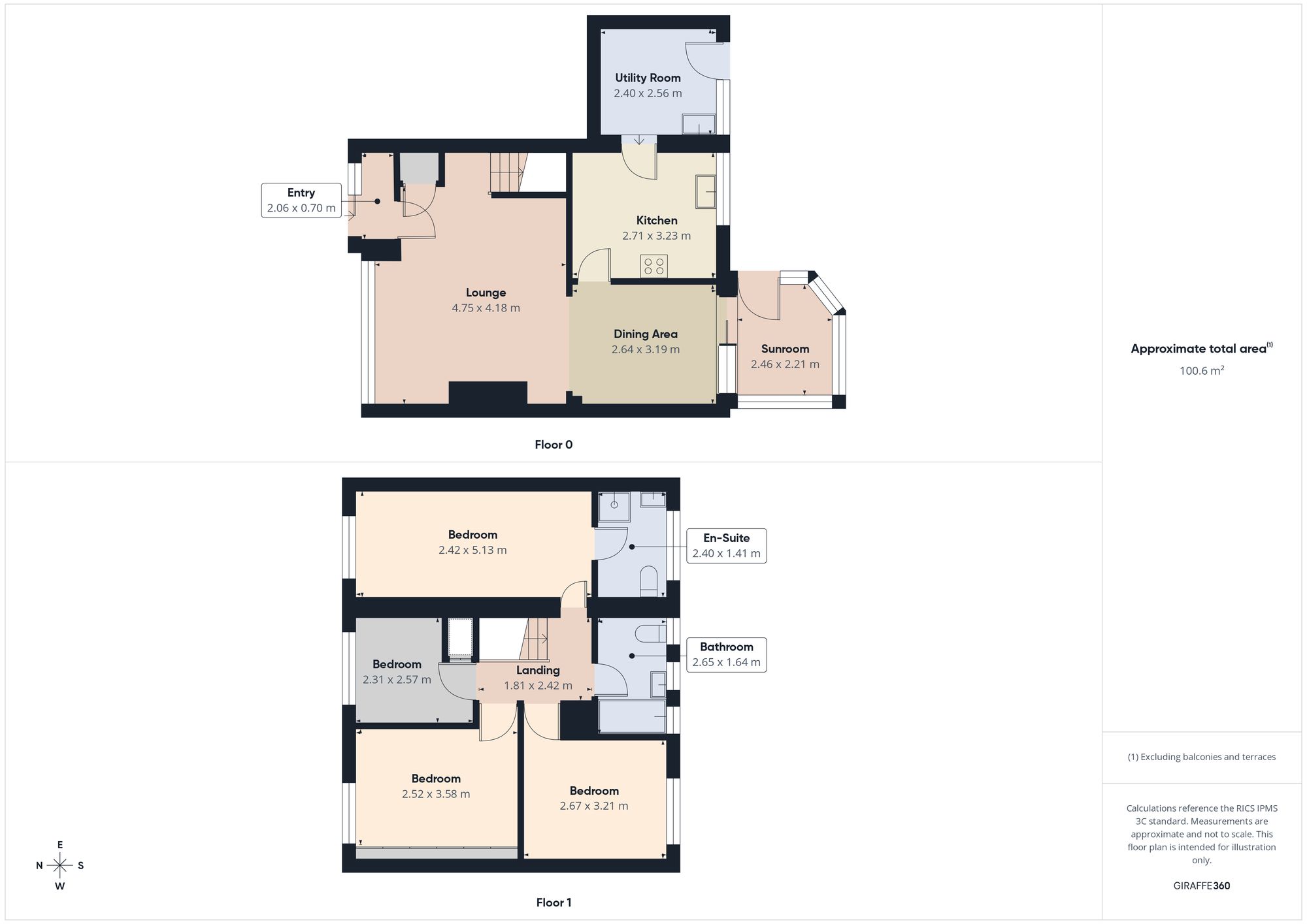 Upstairs, the property comprises four well-proportioned bedrooms, three of which include fitted wardrobes, offering ample storage for a growing family. The main bedroom enjoys the added luxury of an en-suite shower room, while the remaining bedrooms are served by a family bathroom.