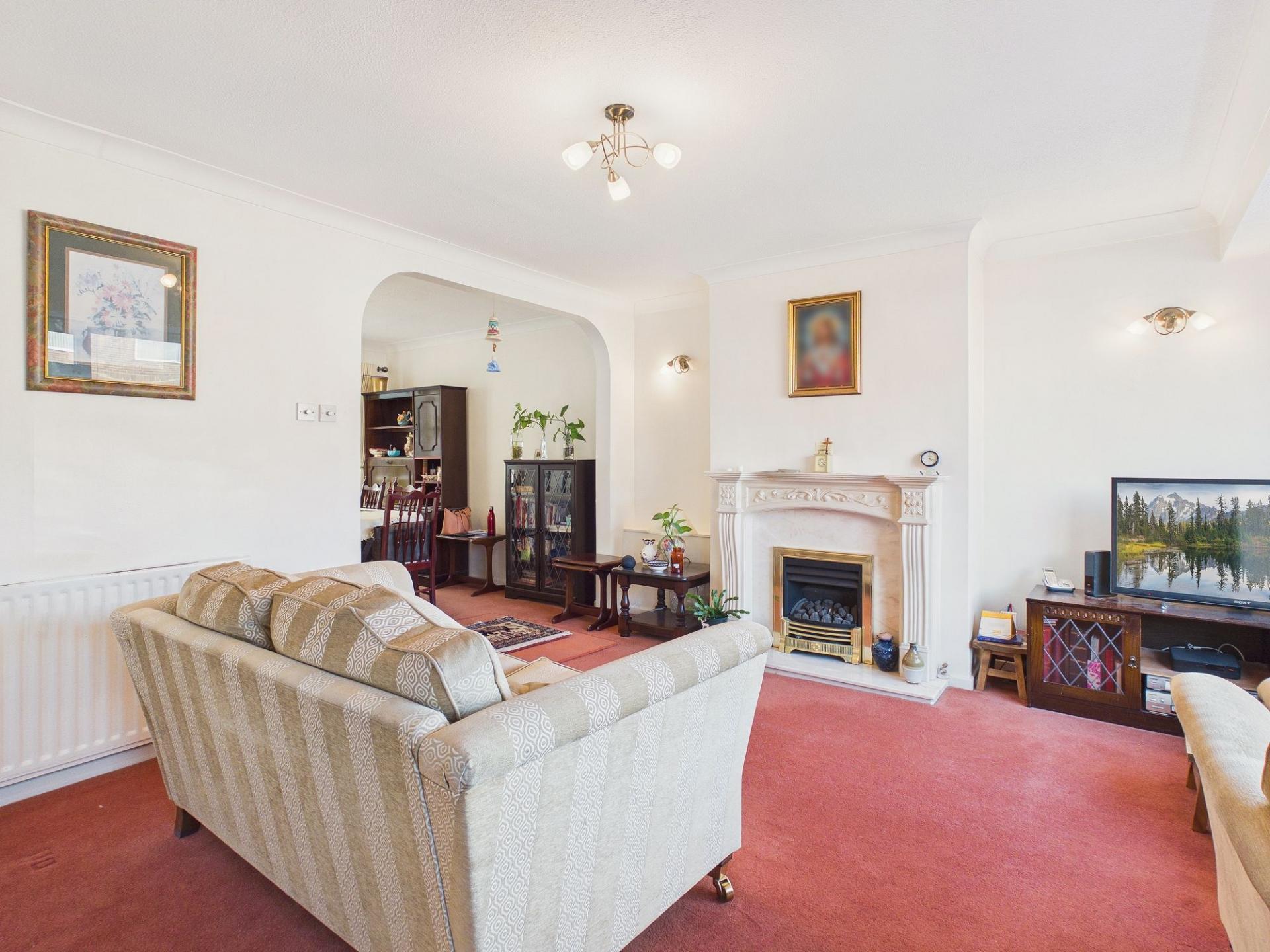 The ground floor offers versatile living accommodation beginning with a welcoming entrance porch that leads into a generously proportioned lounge. The lounge features an attractive focal point fireplace set against the chimney breast, creating a warm and inviting atmosphere, while an open archway flows seamlessly into the dining area. Positioned to the rear of the property, the dining space benefits from sliding patio doors that open into a bright and airy sunroom, a perfect spot to relax and take in views over the rear garden.