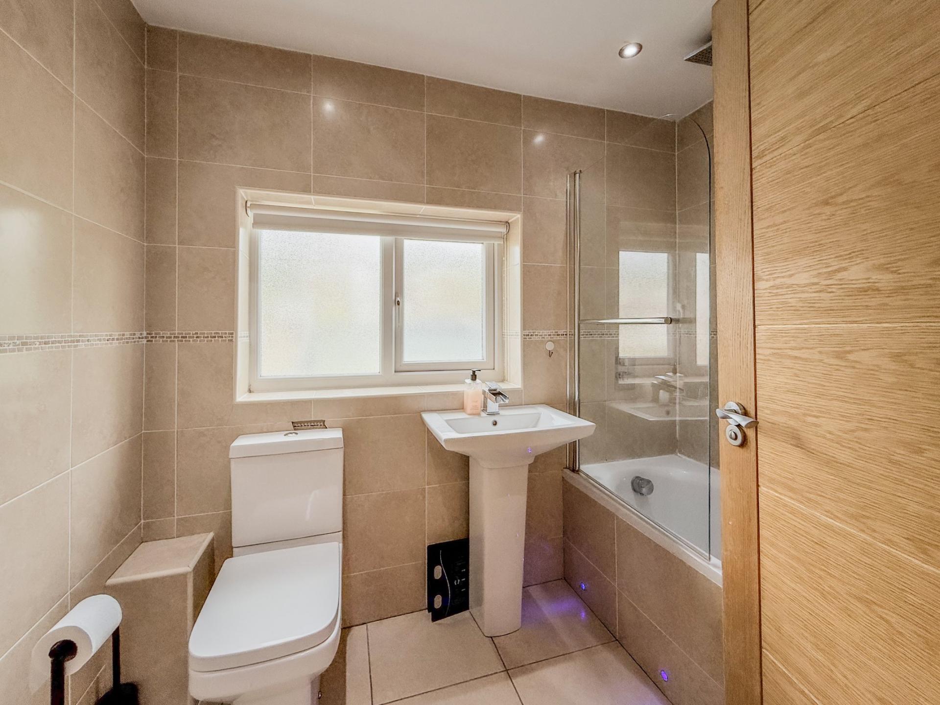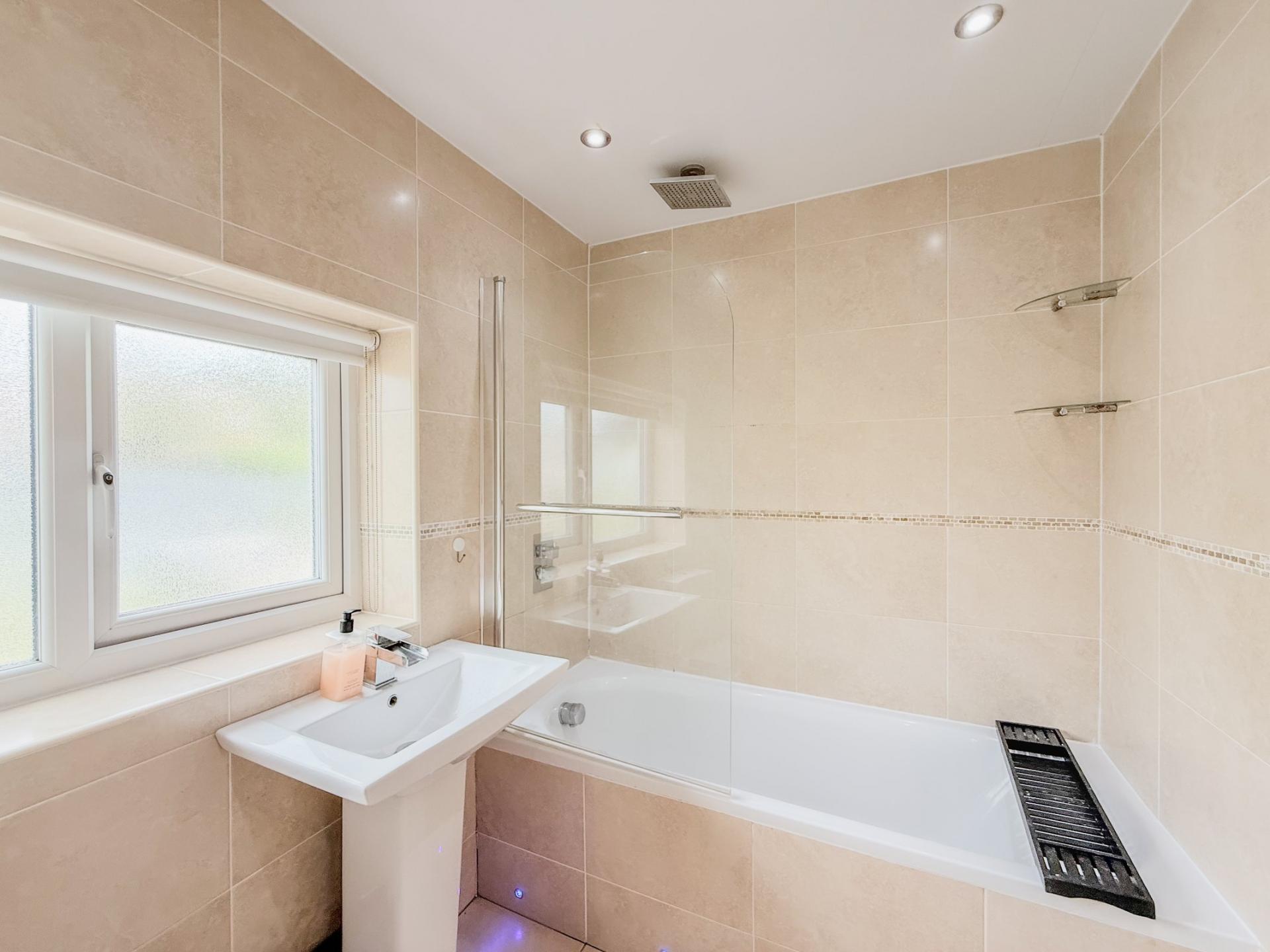 Upstairs, the first floor provides three well-proportioned bedrooms, all tastefully decorated and versatile in use. The modern family bathroom is fitted with a white suite including a mains-fed rainfall-style shower over the bath, offering a spa-like experience in the comfort of your own home.