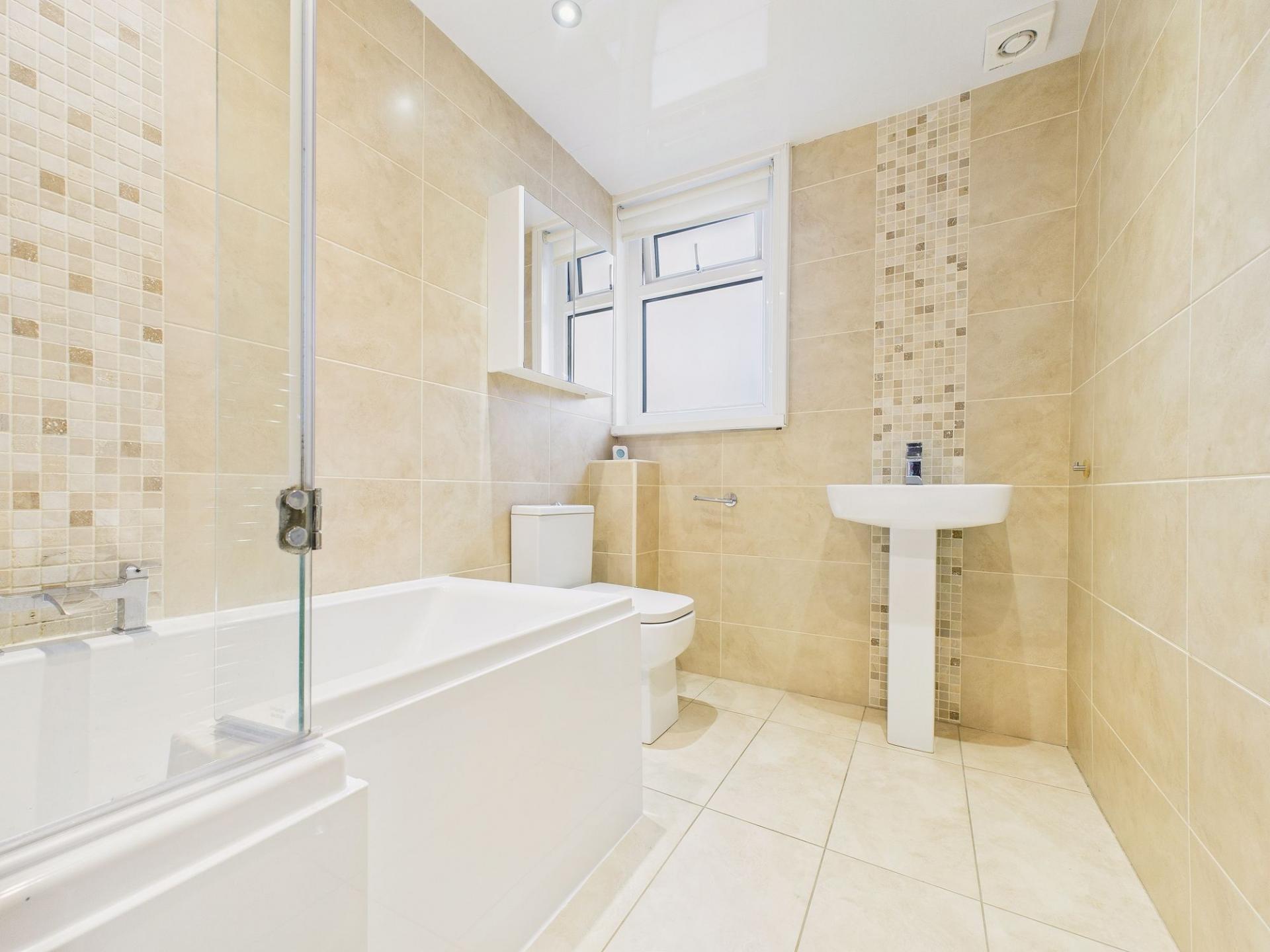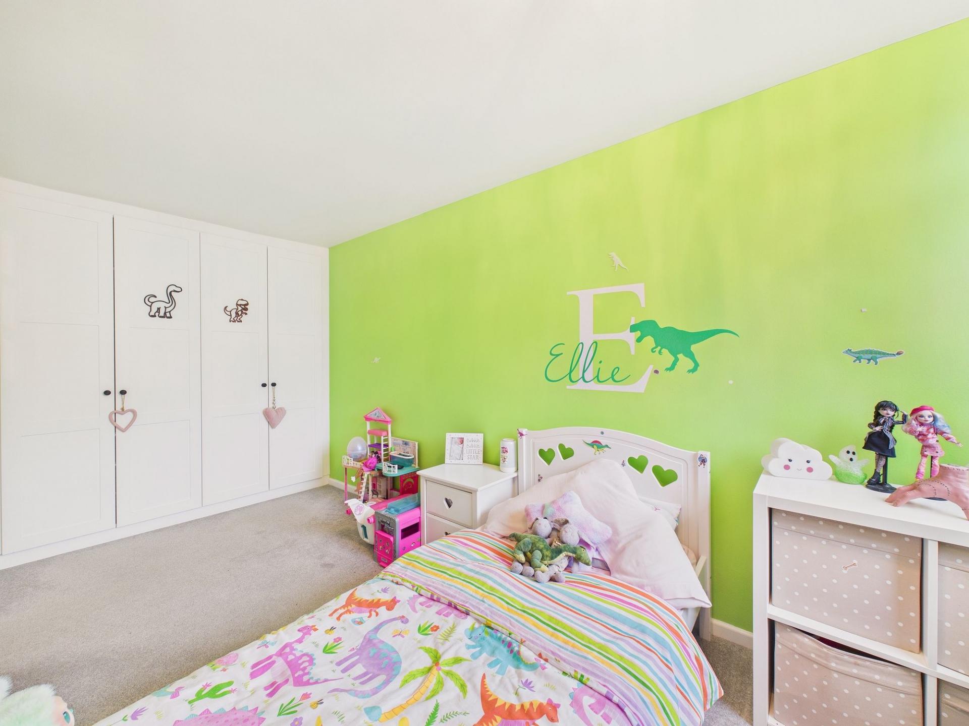 The first floor hosts three well-proportioned bedrooms, two of which benefit from built-in wardrobes, offering excellent storage solutions. A modern family bathroom, fitted with a crisp white suite, completes the internal accommodation.