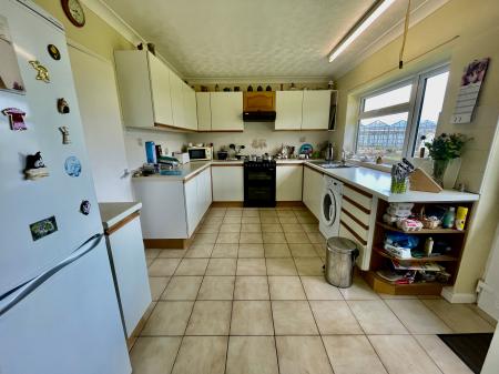 KITCHEN 13' 4" x 10' 3" (4.07m x 3.13m) Fitted base cupboards and drawers beneath the roll edged worktops with inset single drainer stainless steel sink unit with mixer tap, intermediate wall tiling, matching eye level wall cupboards, cooker hood, plumbing and space for washing machine, ceramic floor tiles, coved cornice, fluorescent strip light, UPVC window to the rear elevation.