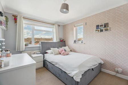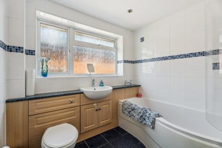 Moving to the first floor via the stairs in the entrance hall there are three bedrooms and family bathroom. The master bedroom enjoys a view of the rear garden and benefits from fitted wardrobes, whilst bedrooms two and three overlook the front of the property. The second bedroom is also a comfortable double with built in storage. Bedroom three is a large single room which could fit a small double bed. The family bathroom is a three-piece bath suite with shower attachment.