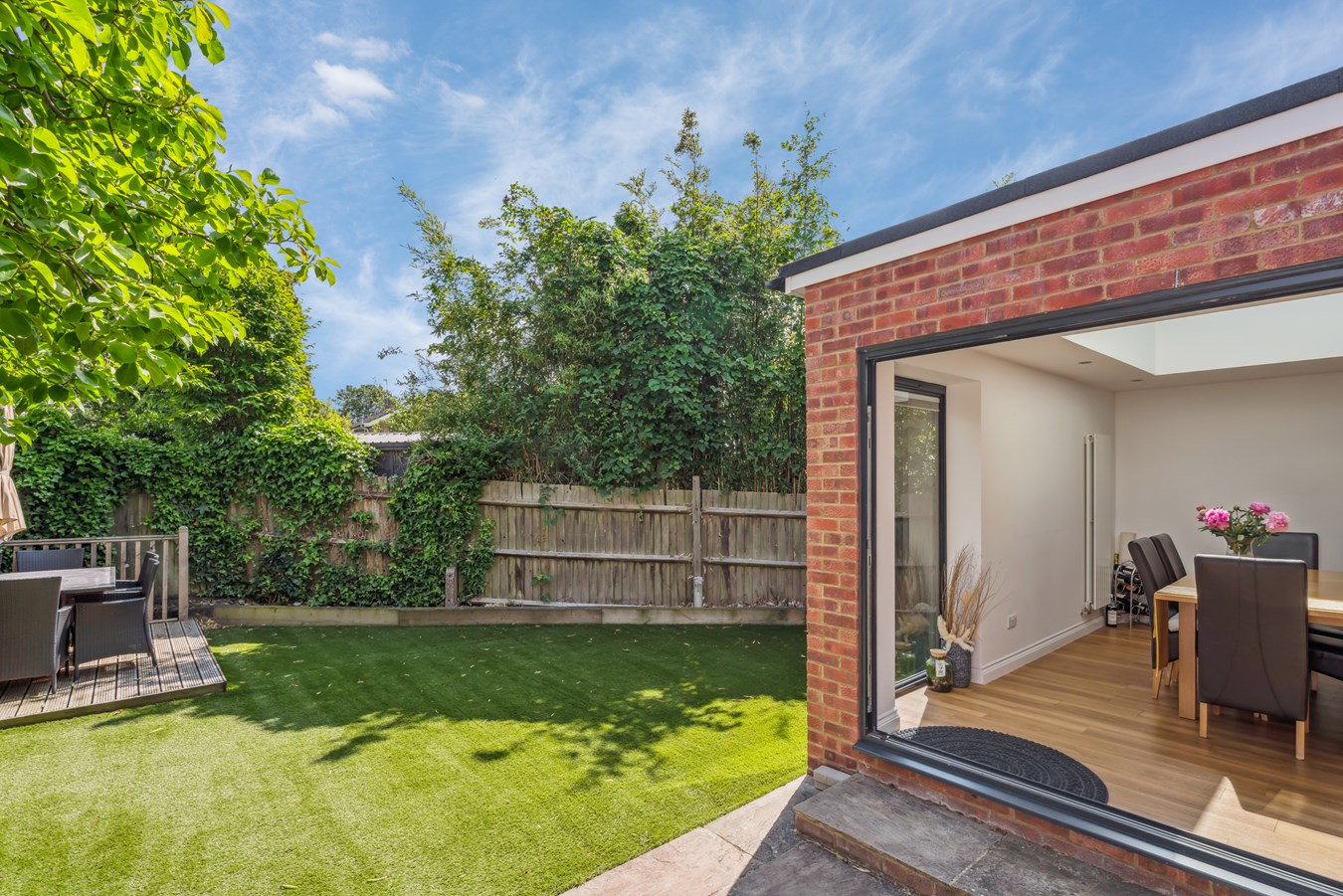 To the front of the property there is off street parking for two cars on the drive plus there is further street parking directly in front of the property. The rear garden is mainly laid to lawn and features a decked seating area at the rear. There is a patio directly off the bifolding doors and from there, access to the converted part of the garage which has electrics and has been insulated to provide a separate office space.