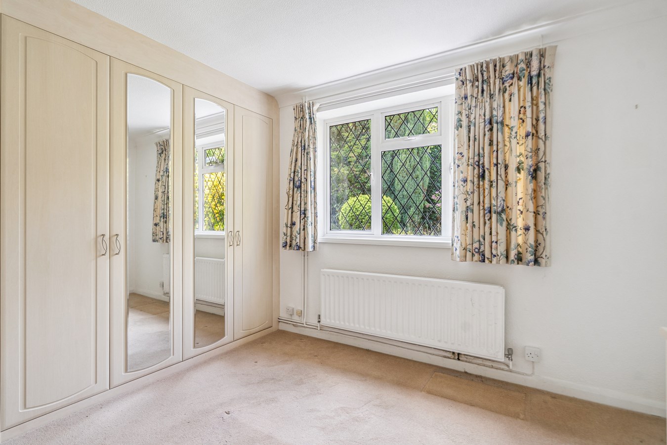 The living room is particularly generous in size and enjoys a bright aspect thanks to its wide bay window. Double doors lead through to the conservatory, which overlooks the garden and offers a peaceful additional living space.