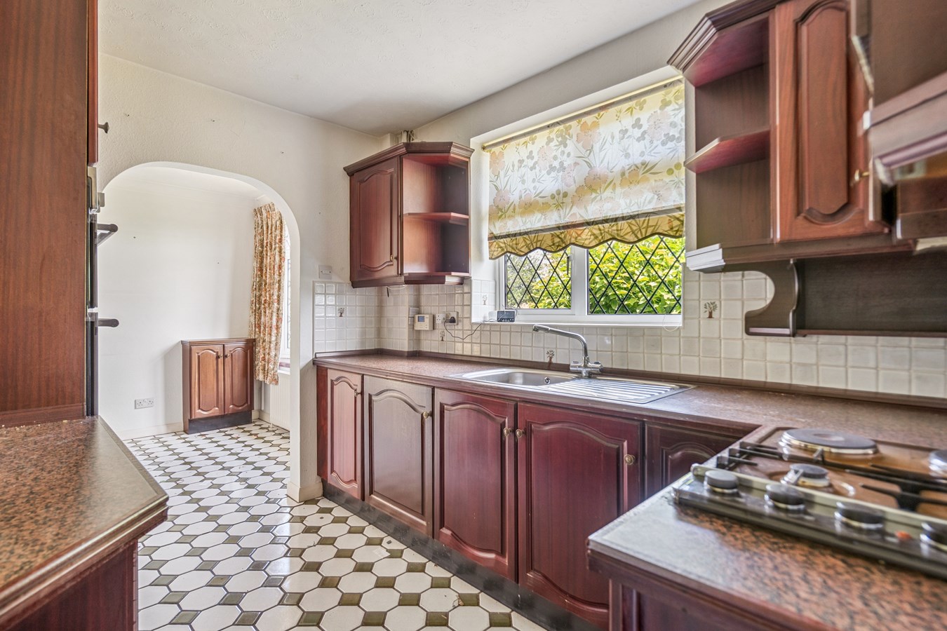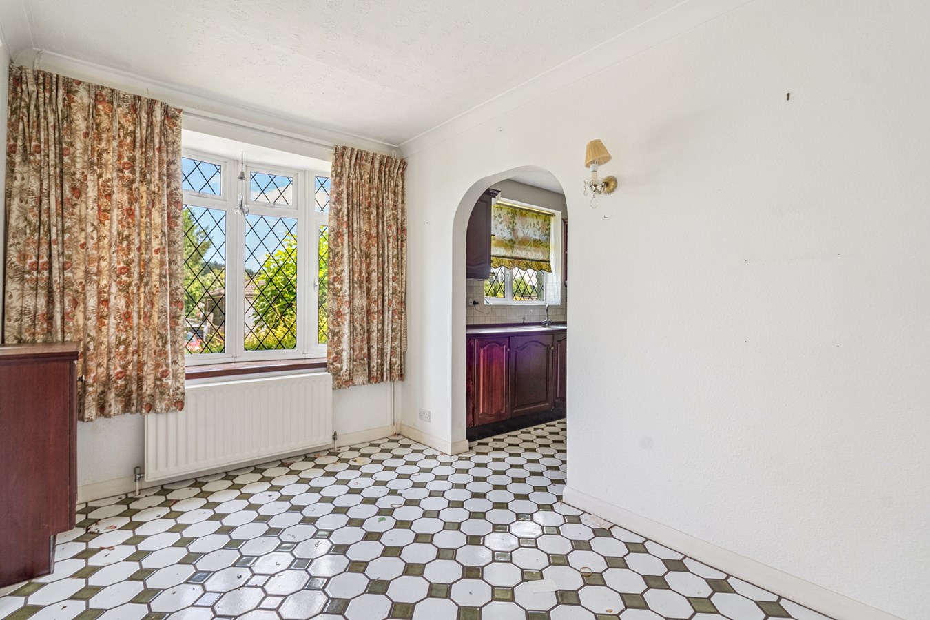 The kitchen is positioned towards the front of the property and has a well-planned layout and could easily be modernised into a practical and contemporary space. The kitchen flows through to a separate dining room, which benefits from a front-facing bay window and could alternatively be opened up to create a larger kitchen/dining space, subject to the necessary consents.