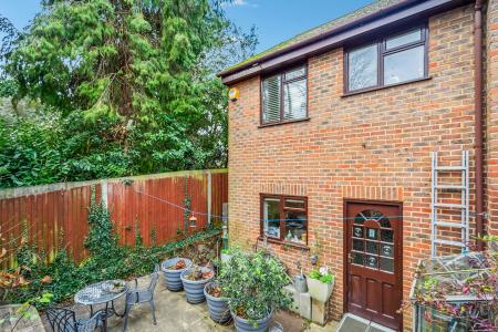 Outside, the property benefits from a paved entrance path to the front door at the front. The rear garden is paved with space for seating and plenty of space for potted plants and gardening equipment.
