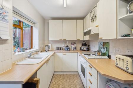 The front door leads into the porch entrance which opens up into the spacious living room, including a double-glazed bay window to the front of the property. There is a door then leading to the full width kitchen. The kitchen is a fitted kitchen with wooden fronted units at both base and eye level allowing for ample storage and workspace area, fitted oven and hob plus a door leading to the rear garden.