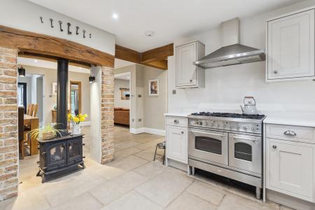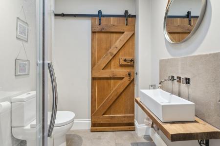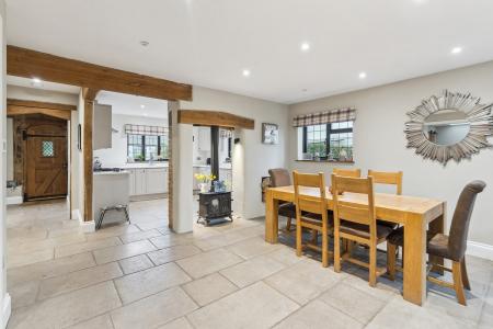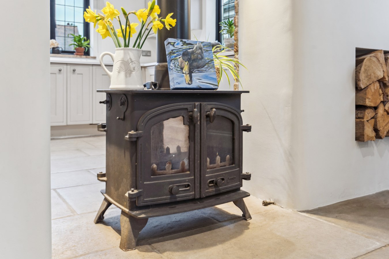 As you enter through the front door you step into the spacious entrance hall which provides direct access to the utility and through to the open plan hub of the property. The open plan living and family room is a fantastic space which allows for multiple sofas and units as well as a large six-seater dining table. There is also a log burner which cleverly separates the kitchen and living space whilst providing heat to both rooms. The modern kitchen provides plenty of surface space and storage with units at both base an eye level and has space for a six-ring double oven, dishwasher, fridge, and freezer. The extended separate living room offers further seating and double doors onto the rear garden as well as a large log burner situated in the fireplace creating a more snug family room. The utility room provides space for the washer and dryer as well as another sink and additional storage. The downstairs WC is a modern three-piece shower suite. The ground floor is underfloor heated throughout.