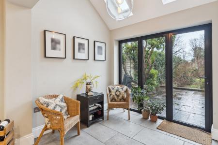 To the front of the property there is off street parking for multiple cars and to the rear, the garden has been designed and landscaped to maximise the space. The garden features a large patio which is directly accessible from the bi folding doors off the open plan living and dining space as well as double doors from the separate living room. The large laid to lawn area then stretches down to the rear patio which is an entertainer’s dream. There is built in seating surrounding a fire pit, a large fitted bar with beer pump and twin taps installed and storage space, space for an eight-seater outside dining table as well as a cinema room and office/annexe space with shower room ensuite. There is side access along the left-hand side of the property.
