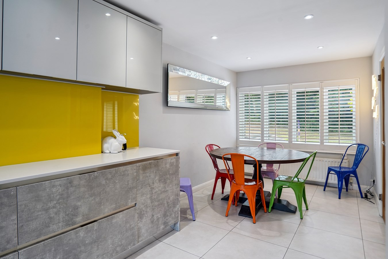 With a door from the main hallway, you will find the stunning heart of the home, a bespoke fitted kitchen and dining room. This exceptional space has been thoughtfully designed to offer the perfect balance of form and function, with high-quality integrated appliances, extensive storage, clean modern lines, and generous space for both dining and entertaining. With direct access to the rear of the property, it is ideal for everyday convenience as well as hosting. Large windows and glazed doors help flood this area with light.