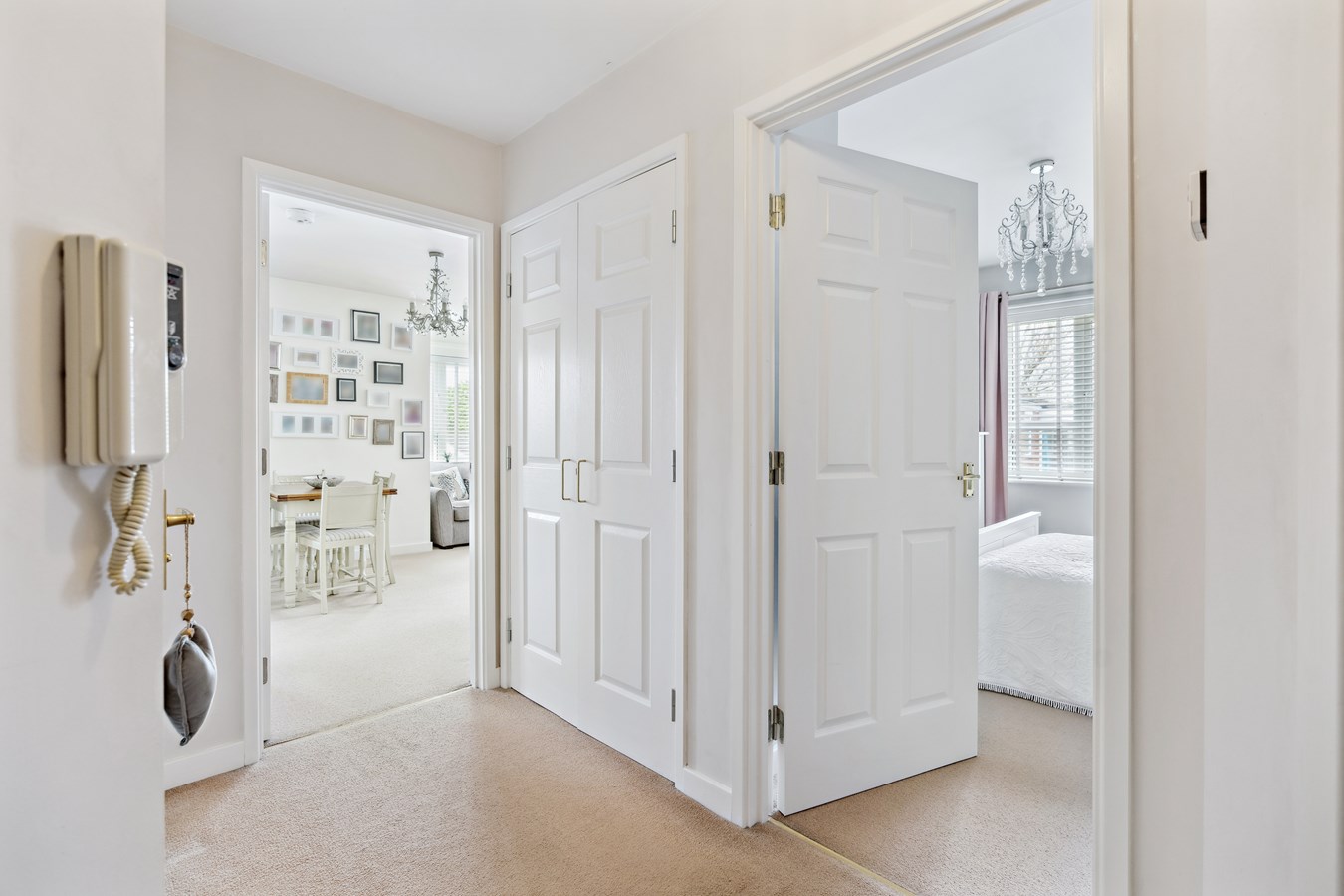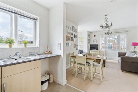 Upon entering the property, you will find an excellent sized hallway that has two generous sized storage cupboards and access to the bright and spacious living room which has views over the well-kept communal gardens from the Juliet Balcony and dual aspect window. The fitted kitchen has a range of modern fitted units at base and eye level plus space for a fridge/freezer and washing machine.
