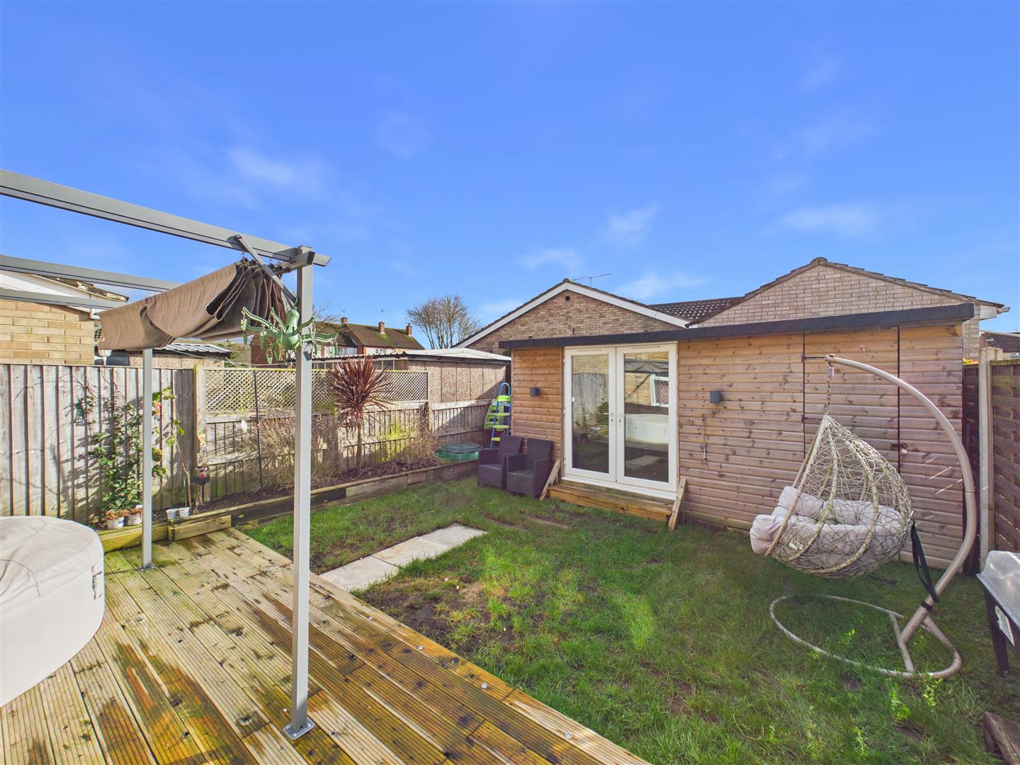 Outside - The south-facing rear garden benefits from a decked area directly to the rear of the property, access to the garage and a modern summer house, perfect for an office or bar area. There is ample parking space for up to three vehicles on the driveway to the front and side of the property, which leads to a single garage adjoined to the property with an additional door to the rear garden.