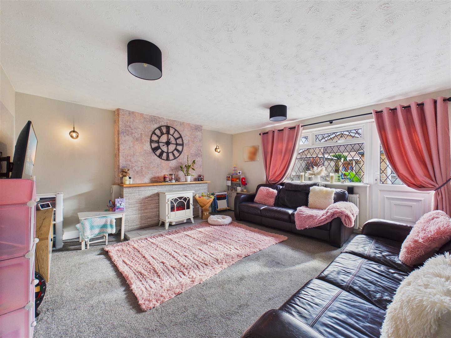 Lounge - With tiled fireplace and hearth with mantel over, window to rear and door opening out to the rear garden. Please note the electric fire will not be included in the sale.