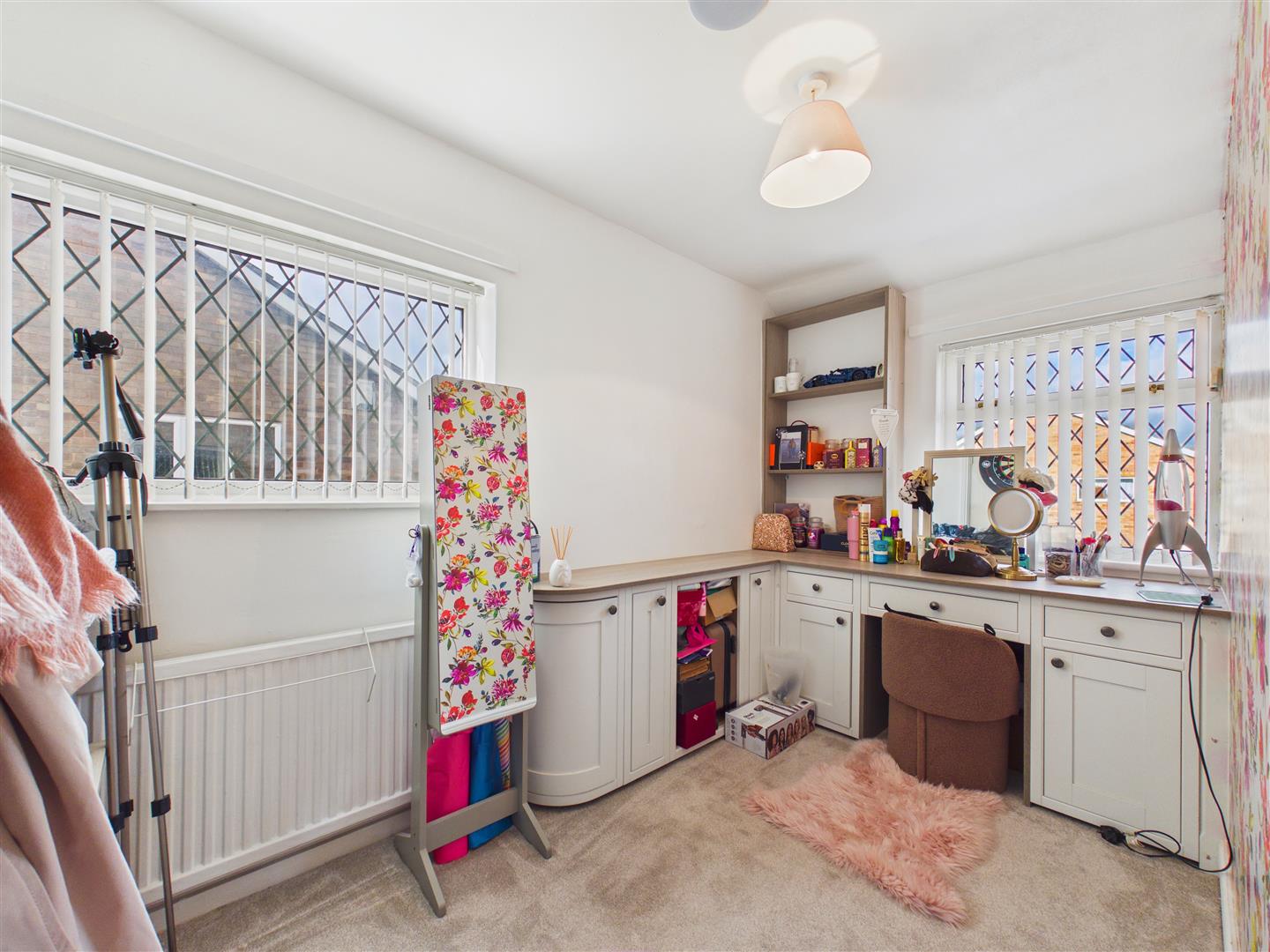 Bedroom 2 - With storage cupboard to corner, window to the side elevation and fitted dressing units beneath window to the front elevation.