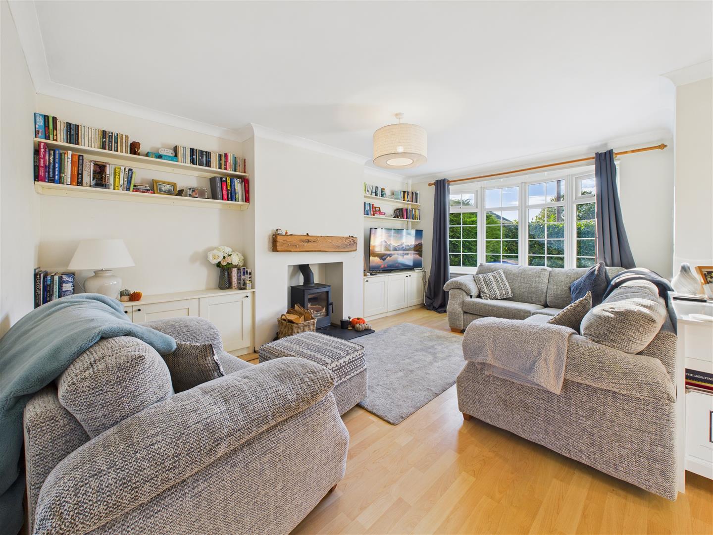 Lounge/Dining Room - A space suited for a dining table can be found upon entry of this L-shaped room, with lounge space adjacent. There is a bay window to the front and a log burner with stone hearth and fitted oak mantle, and fitted storage cupboard space either side of the chimney breast. Stairs lead to the corner lead to the first floor.