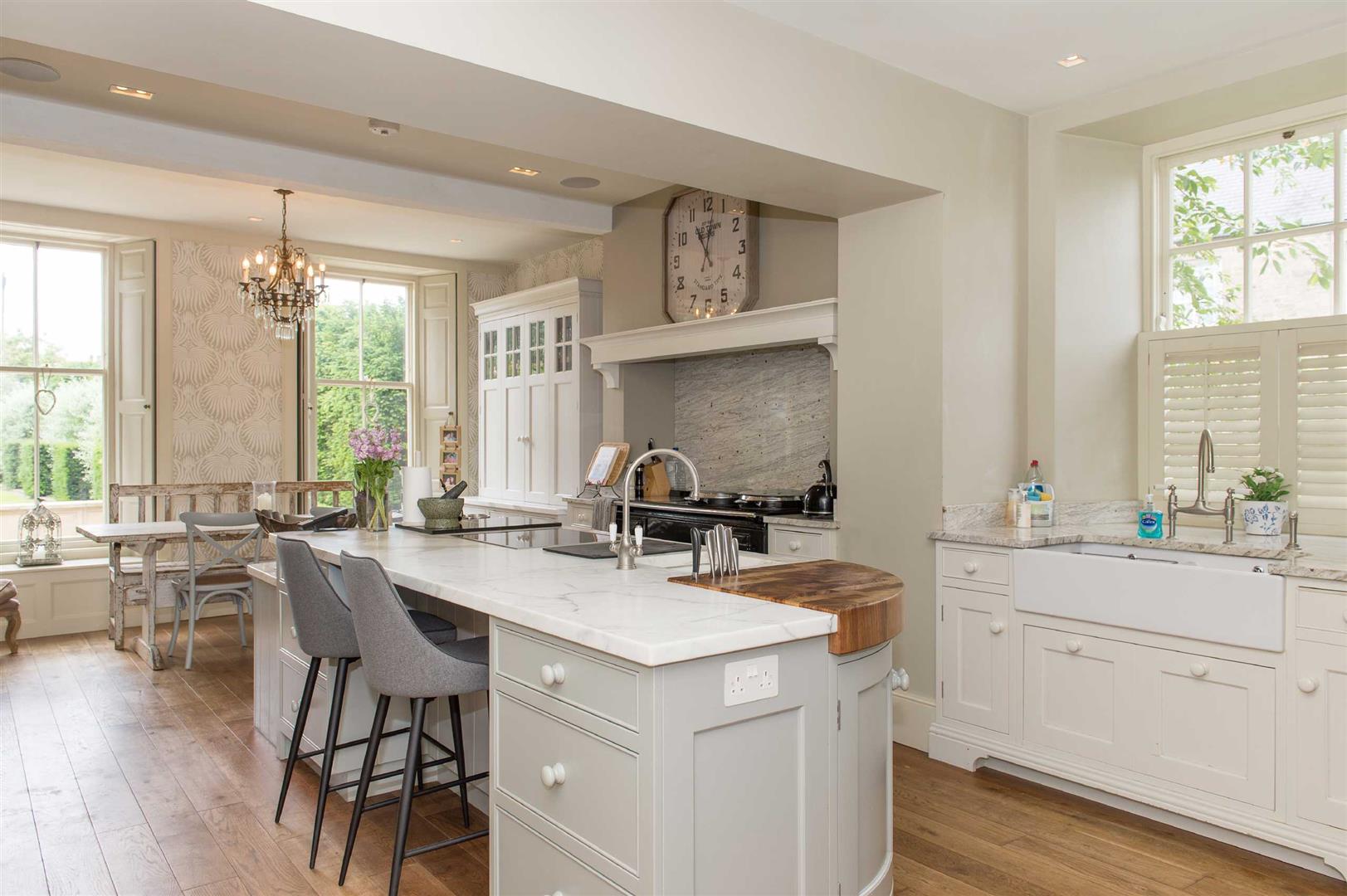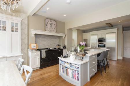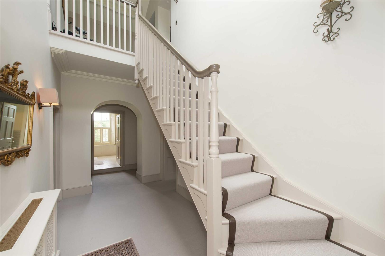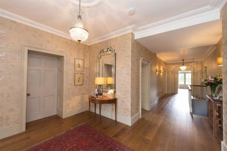 At over 6,300 sq.ft (587 sq.m) spanning three floors, the Portland Stone welcoming hall features a grand staircase leading to all principle rooms including an elegant drawing room, 24ft dining room with French doors to a walled garden and croquet lawn plus access to a fabulous 26ft kitchen comprehensively fitted to a high standard with bespoke cabinets, marble and granite worktops, top of the range integrated appliances and an adjoining utility room. There is also a study and a cinema room complete with integrated Bowers & Wilkins surround sound and log-burner. Steps from the hallway also lead down to a useful wine cellar. The galleried landing on the first floor leads to five double bedrooms and four bath/shower rooms (three en-suite) with a sixth bedroom and bath/dressing room on the second floor. The impressive 20ft x 16ft master bedroom with integrated audio-visual system features a stunning en-suite bathroom with central free-standing bath and double walk-in shower plus a separate dressing room with panoramic views over the gardens and countryside beyond.