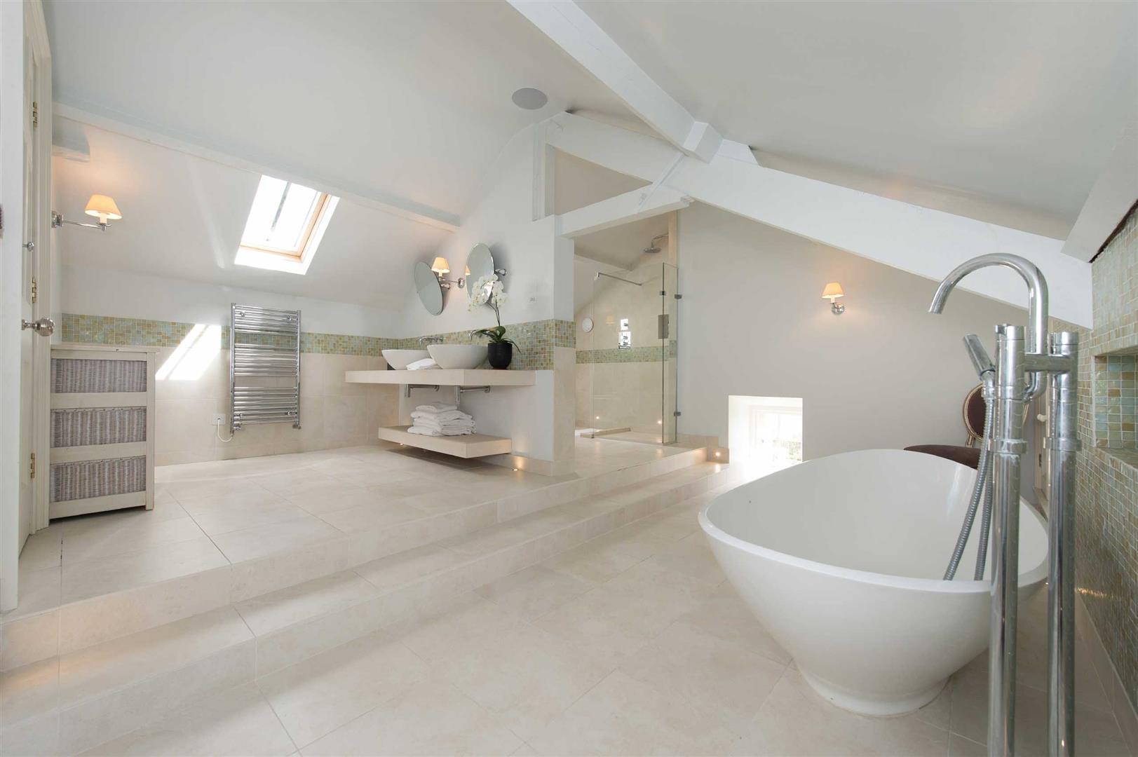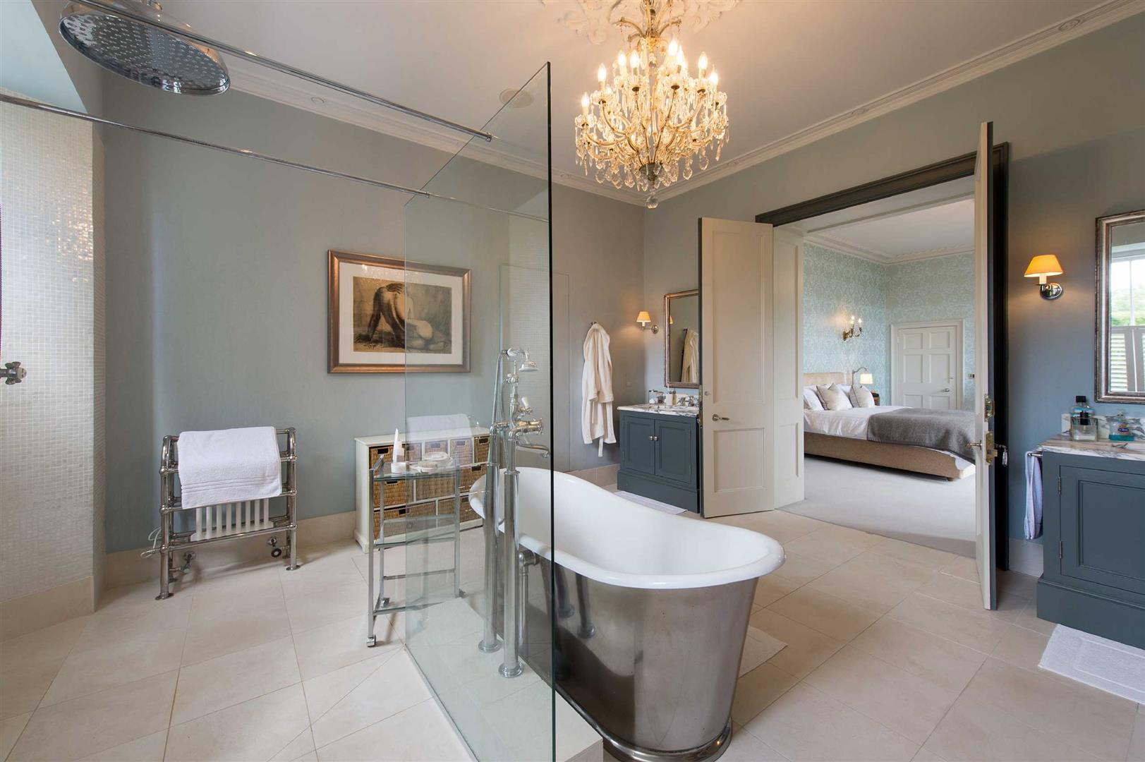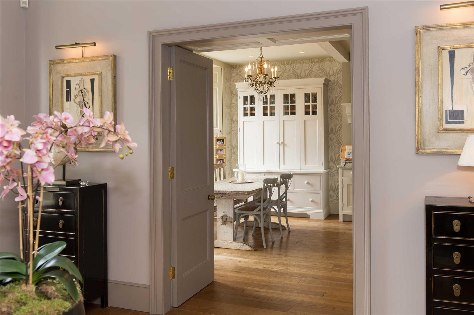 At over 6,300 sq.ft (587 sq.m) spanning three floors, the Portland Stone welcoming hall features a grand staircase leading to all principle rooms including an elegant drawing room, 24ft dining room with French doors to a walled garden and croquet lawn plus access to a fabulous 26ft kitchen comprehensively fitted to a high standard with bespoke cabinets, marble and granite worktops, top of the range integrated appliances and an adjoining utility room. There is also a study and a cinema room complete with integrated Bowers & Wilkins surround sound and log-burner. Steps from the hallway also lead down to a useful wine cellar. The galleried landing on the first floor leads to five double bedrooms and four bath/shower rooms (three en-suite) with a sixth bedroom and bath/dressing room on the second floor. The impressive 20ft x 16ft master bedroom with integrated audio-visual system features a stunning en-suite bathroom with central free-standing bath and double walk-in shower plus a separate dressing room with panoramic views over the gardens and countryside beyond.