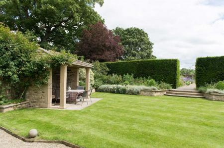 .. - Externally, there are formal landscaped gardens created by an award-winning designer surrounding the property including a York Stone terrace with steps down to a walled garden with outdoor stone gazebo and fireplace together with a beautiful walled flower and vegetable garden. The outbuildings include a double garage, stables, tack room, boiler room, storage rooms and laundry room while the self-contained cottage accessible from the courtyard features two bedrooms, bathroom, sitting room with wood-burner and fitted kitchen. There are additional paddocks and grazing of approximately 2.6 acres under a long renewable lease making this the perfect home for those seeking equestrian facilities.